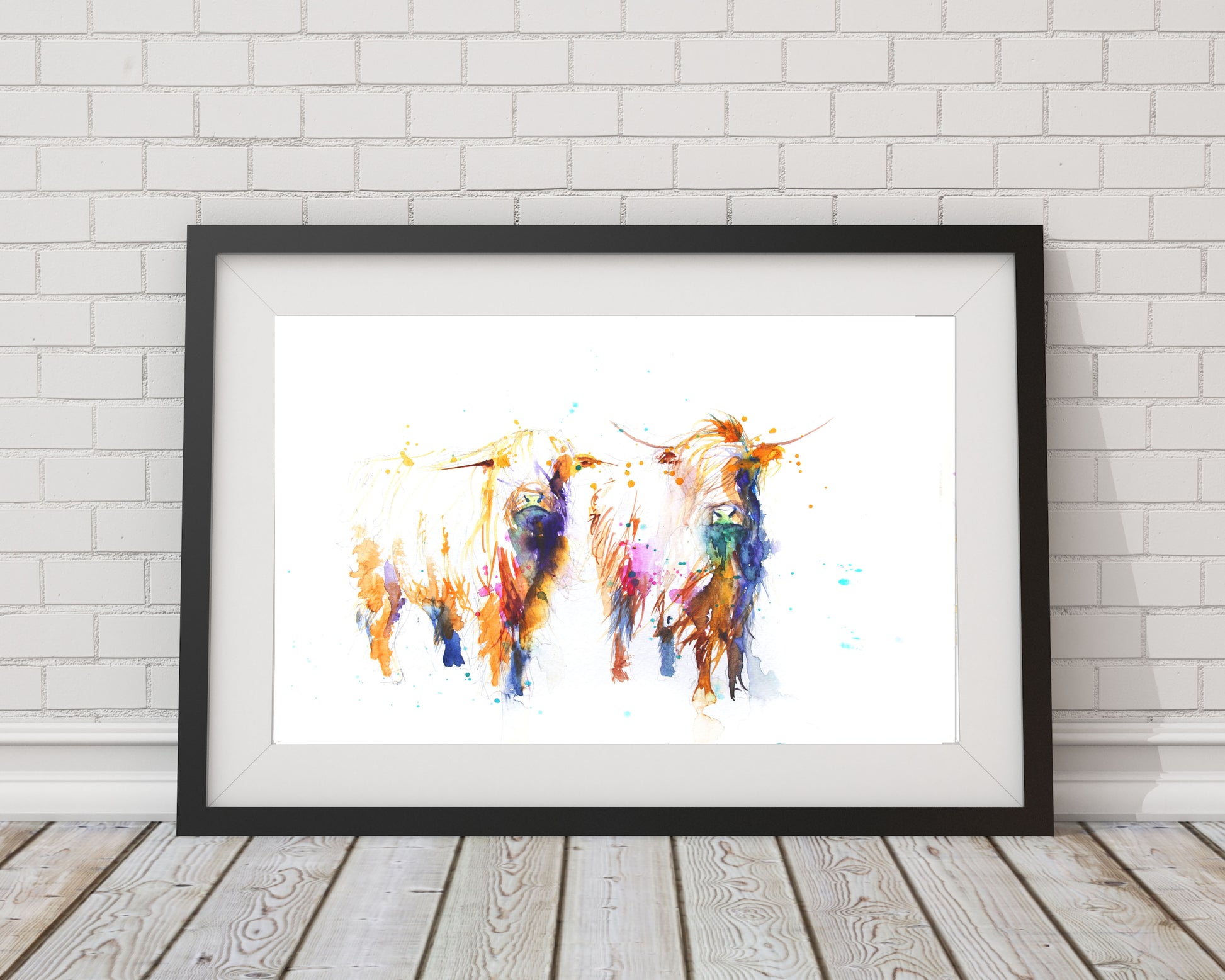 Description: Contemporary highland cow PRINT of my original watercolour painting on  320gm acid-free archival quality fine art paper. Printed using Epson ultra chrome inks for maximum longevity, each one is highly collectable.