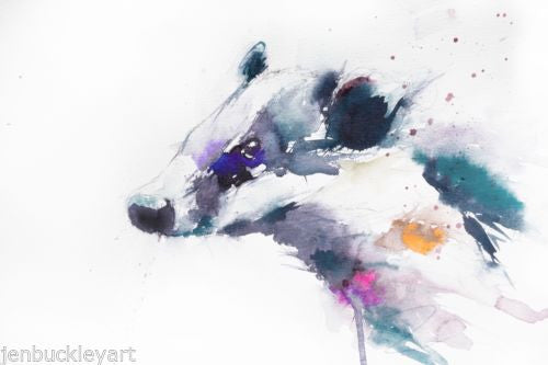 JEN BUCKLEY ART  signed PRINT of my original BADGER watercolour A4