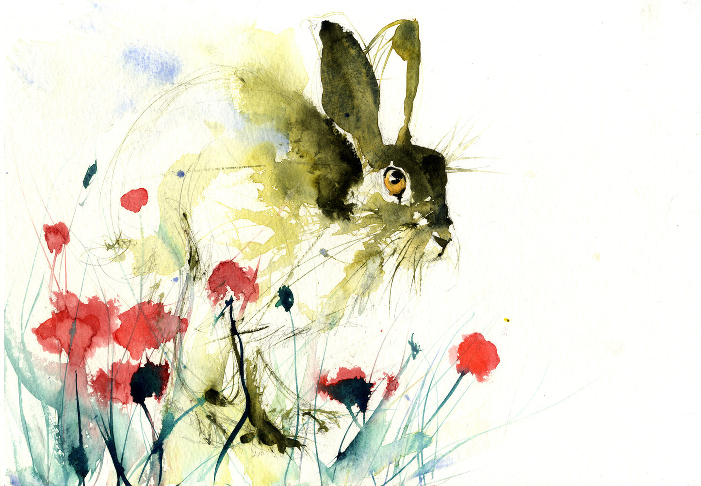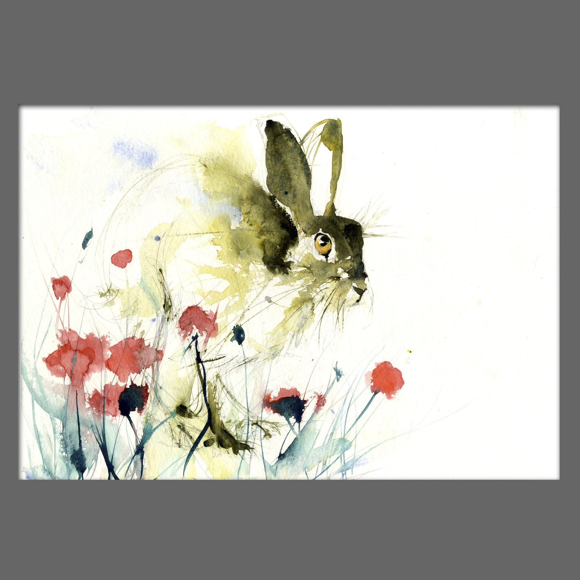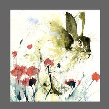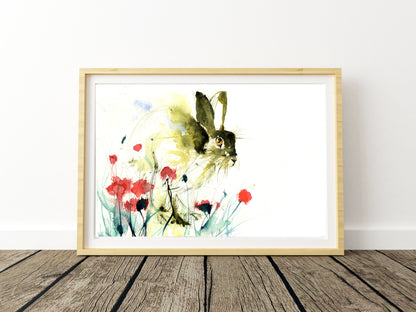 limited edition PRINT of my original HARE in a poppy field watercolour