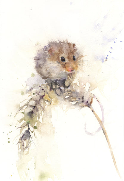 Beautiful watercolour painting of a harvest mouse on a corn ear. Painted on 500 gsm archival quality watercolour paper in lovely Autumnal colours Supplied unmounted and unframed. Please see pictures for framing ideas.