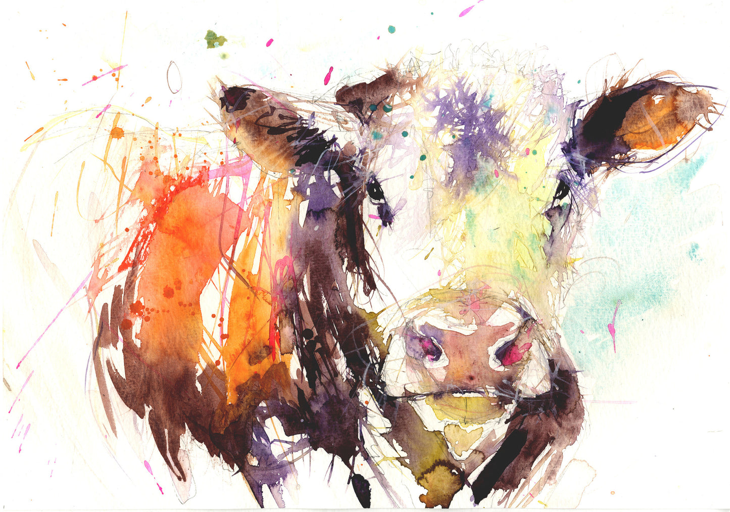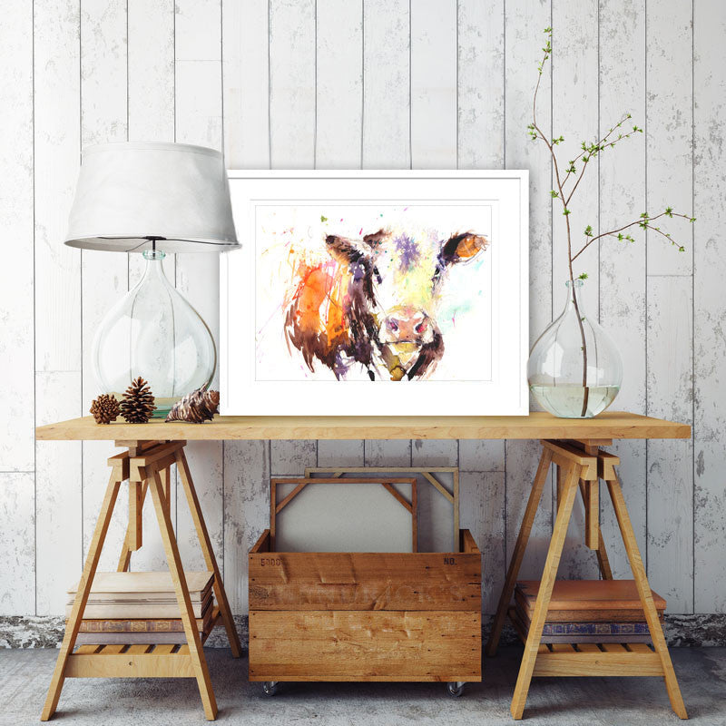 Contemporary limited edition signed cow print (you will receive one of 250) of my original watercolour painting on 315gm acid-free archival quality water-colour paper.