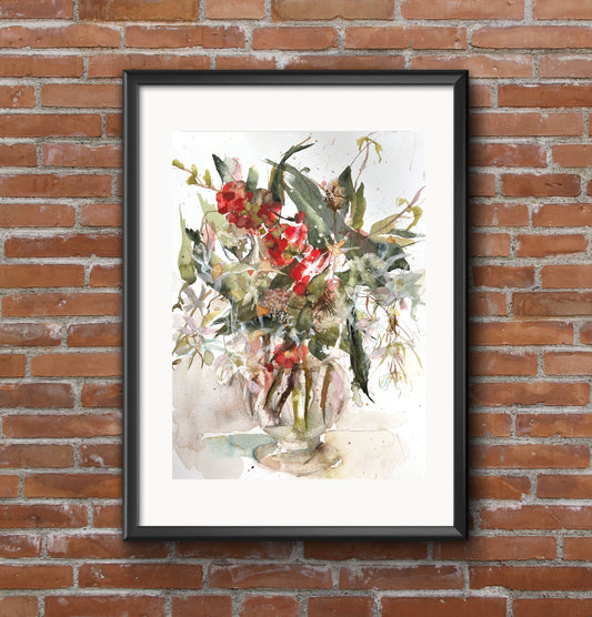 Raku vase with chrysanthemum and forget-me-nots original still life oil painting