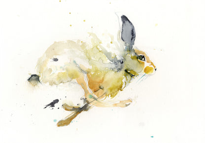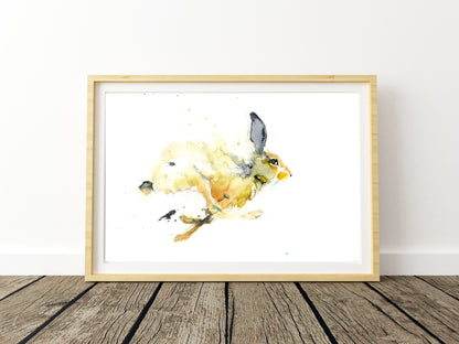 Running hare watercolour art print