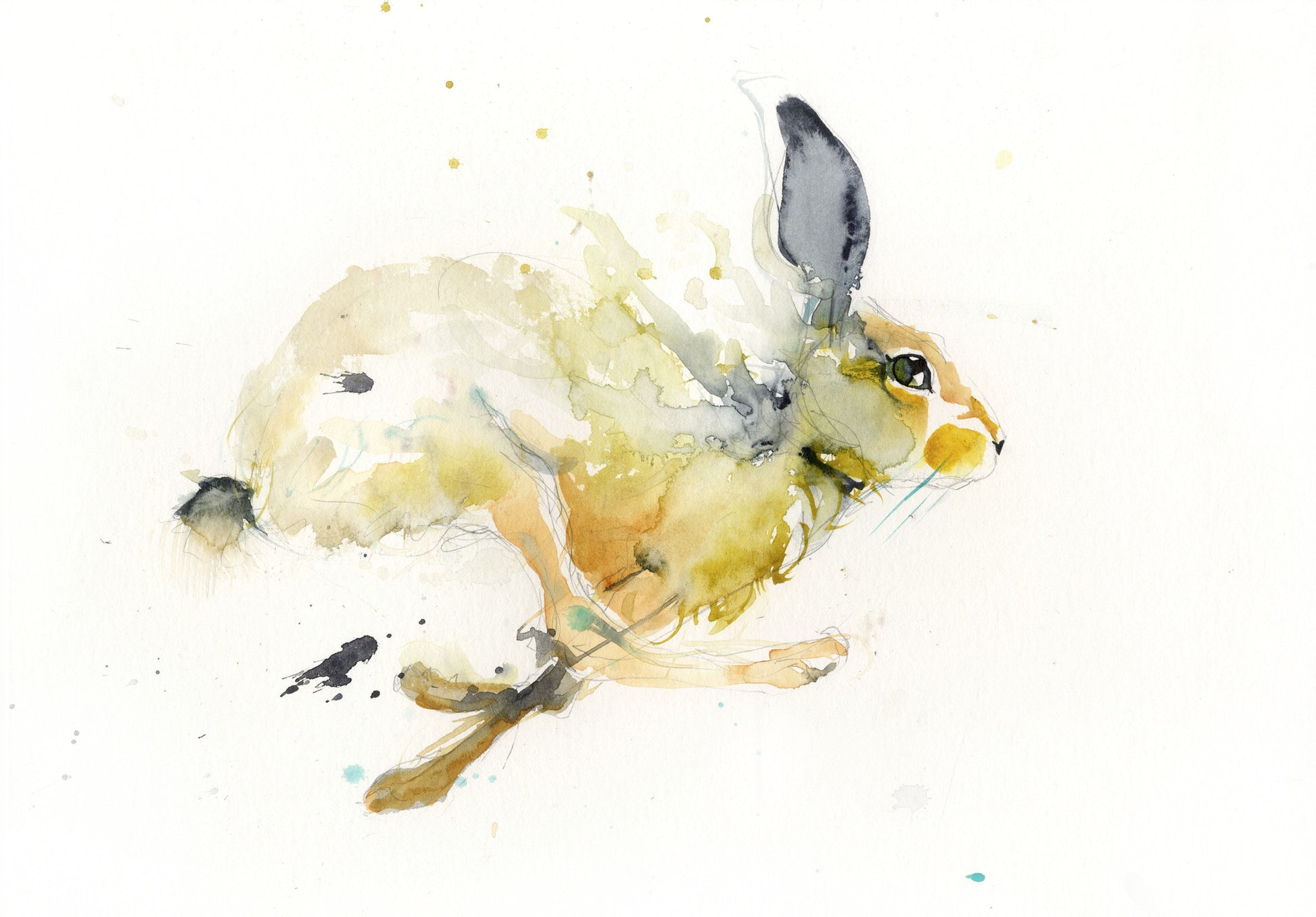 Running hare LIMITED EDITION PRINT (you will receive one of 250) of my original watercolour painting on  315gm acid-free archival quality water-colour paper. Printed using Epson ultra HD inks for maximum longevity.  Supplied in a sealed cellophane wrapper, (please note: A2 size will be sent rolled inside a cardboard tube for maximum protection) unmounted ready to be mounted and framed in a mount and frame of your choice. The print comes complete with a signed and numbered certificate of provenance. The print is signed and numbered in pencil on the front and signed and dated on the reverse. Photos are for illustration only, prints on paper are unmounted and unframed. Photographs are for illustration only, prints on paper are unmounted and unframed. Artwork copyright ©2015 Jen Buckley
