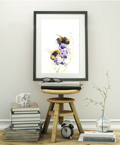 Contemporary limited edition signed bee print (you will receive one of 250) of my original watercolour painting on 315gm acid-free archival quality water-colour paper.