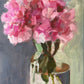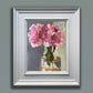 Original still-life oil painting of lovely Peonies. Painted alla prima in oils on a panel 11.5 x 9.5 inches. Choose from unframed or framed in a very deep wide white wooden frame.