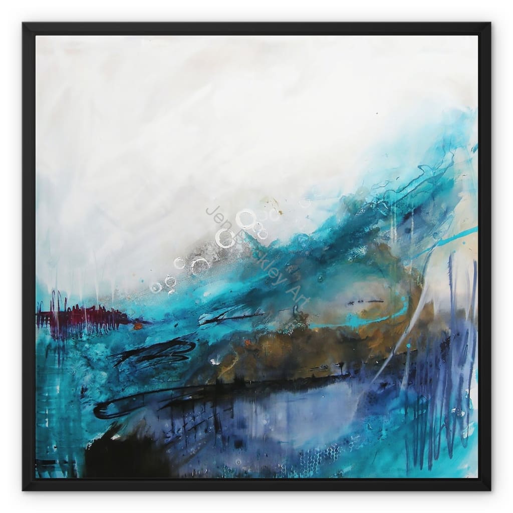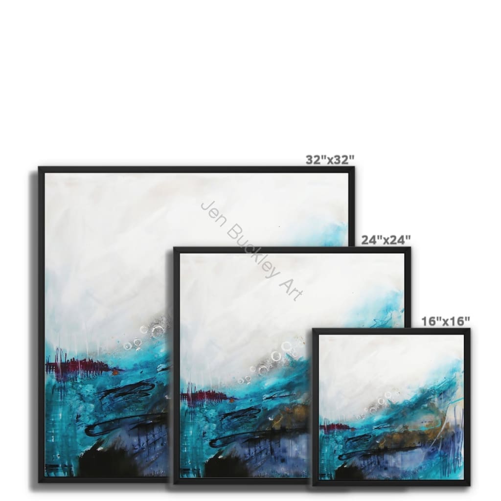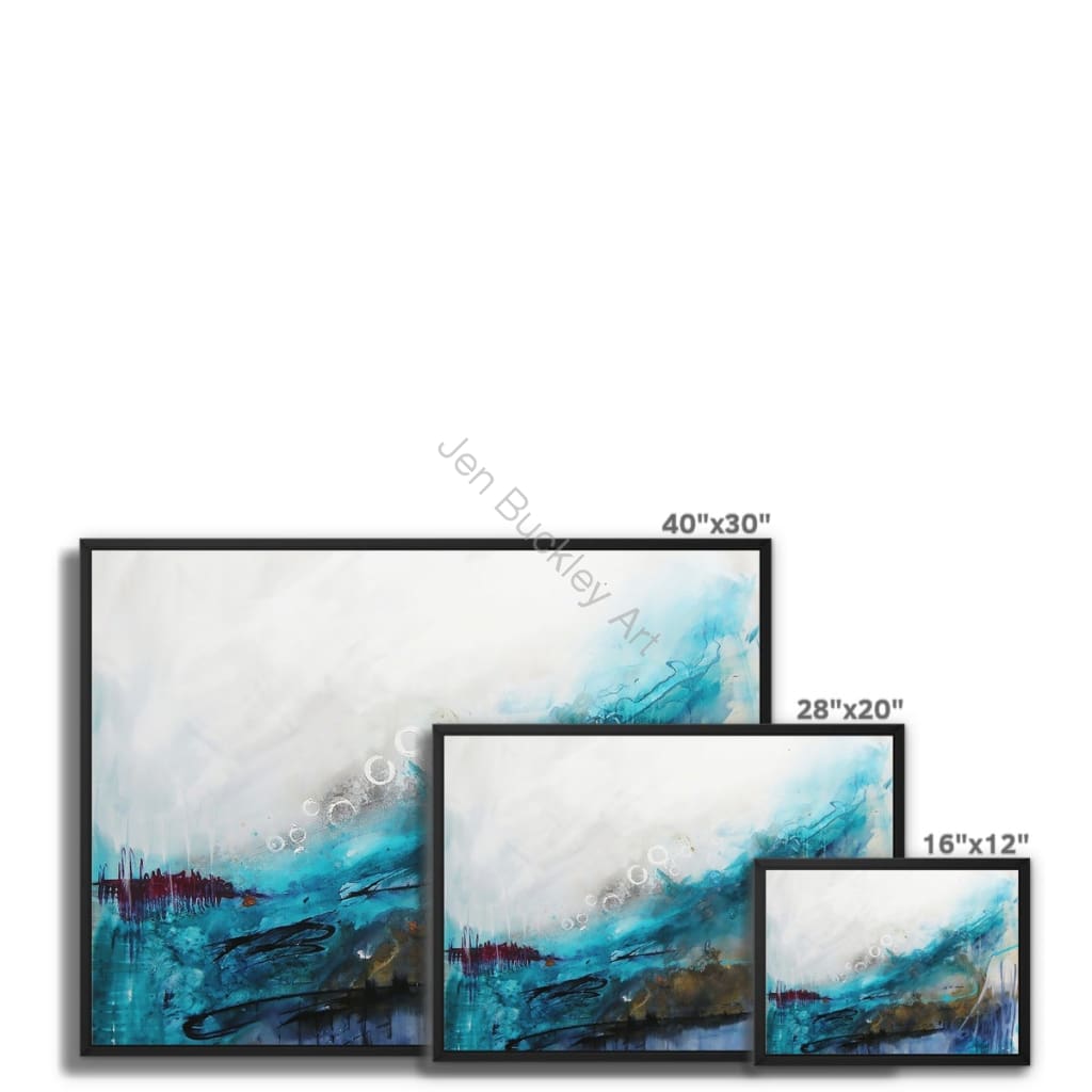 Our framed canvas is a 38mm stretched canvas within a traditional picture frame. The simple addition of a wooden picture frame creates a completely new form of wall art, quite distinct from a standard canvas. The thin frame sits approximately 5mm from the edge of the canvas helping create a floating border.