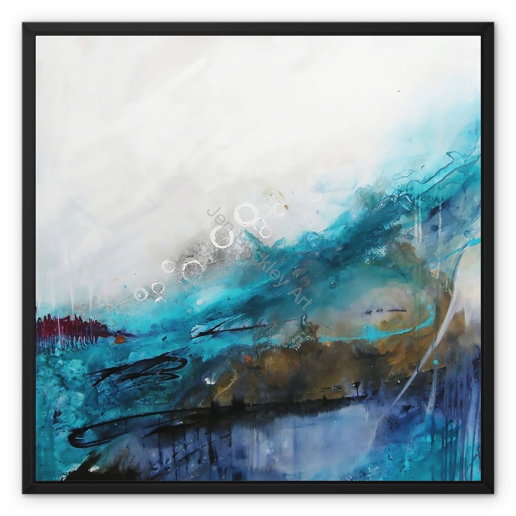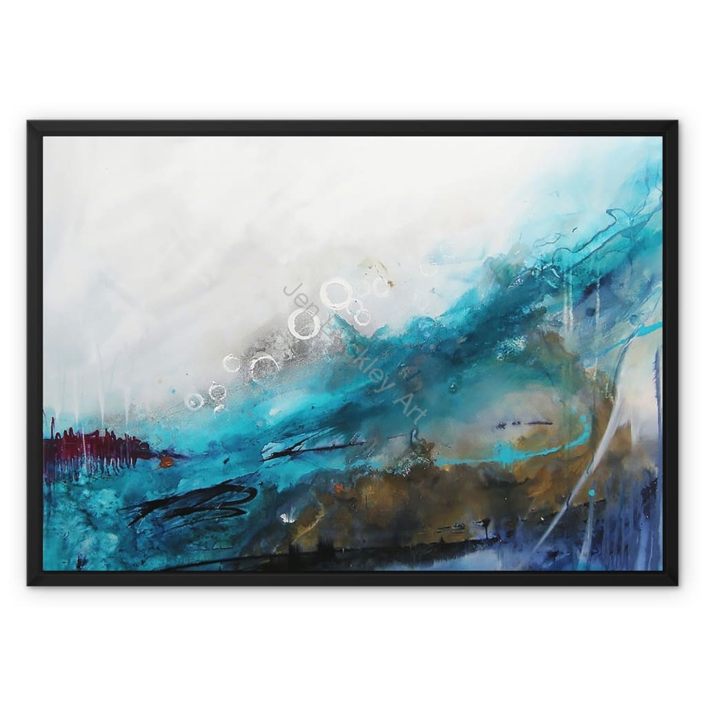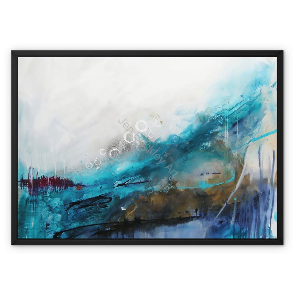 Our framed canvas is a 38mm stretched canvas within a traditional picture frame. The simple addition of a wooden picture frame creates a completely new form of wall art, quite distinct from a standard canvas. The thin frame sits approximately 5mm from the edge of the canvas helping create a floating border.