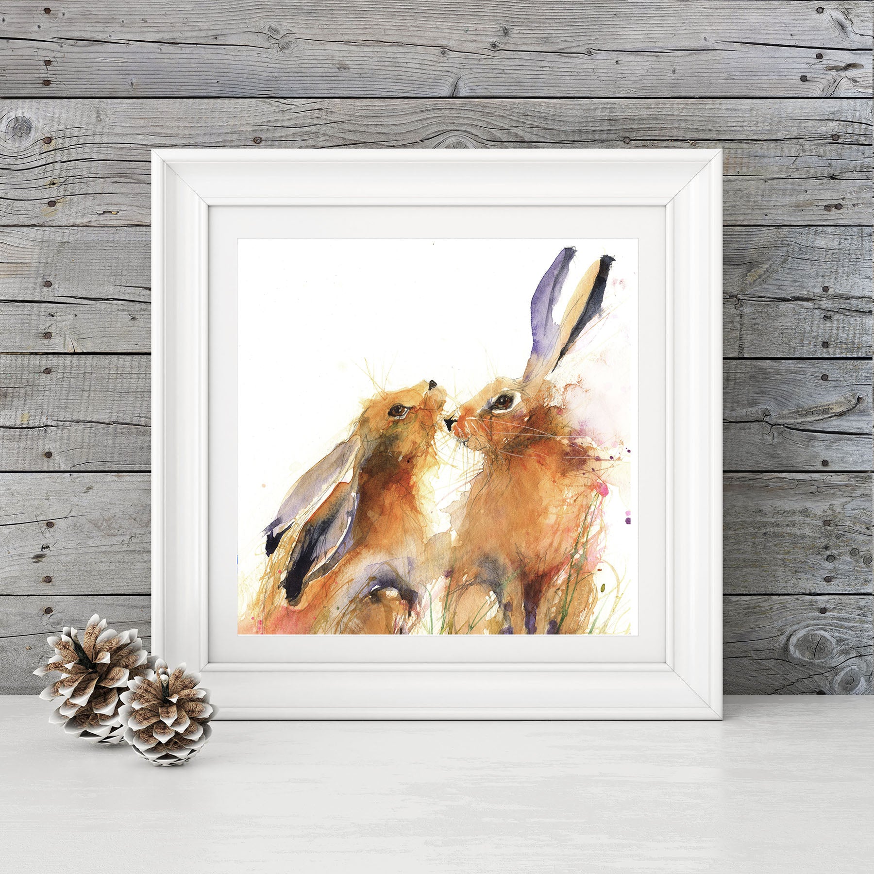 LIMITED EDITION PRINT snuggling hares