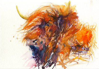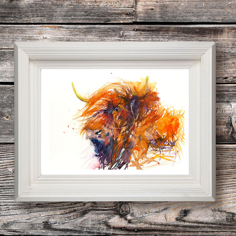 Contemporary limited edition signed Highland cow print (you will receive one of 250) of my original watercolour painting on 315gm acid-free archival quality watercolour paper.