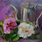 Beautiful creamy roses from the garden, painted alla prima. Unframed