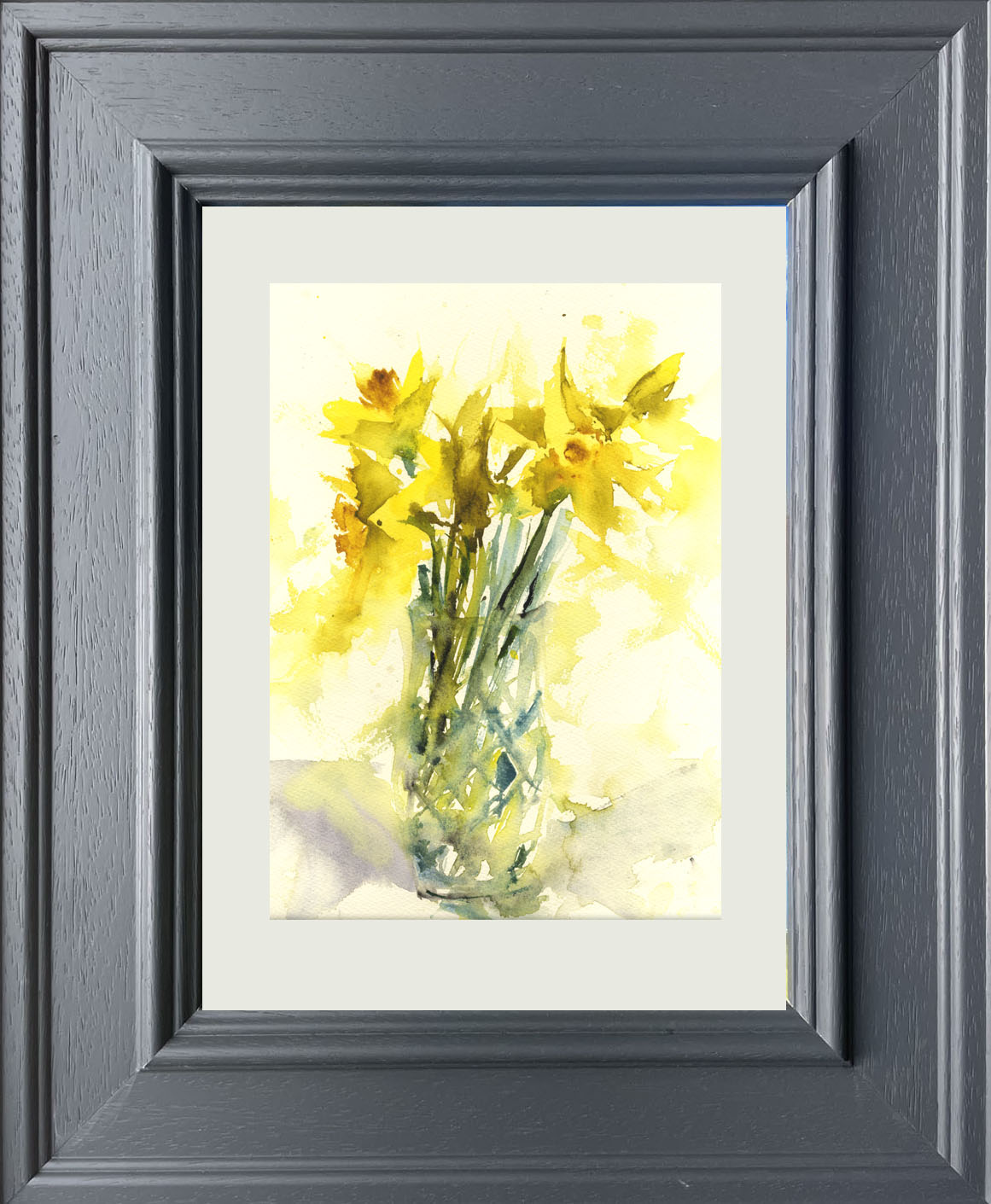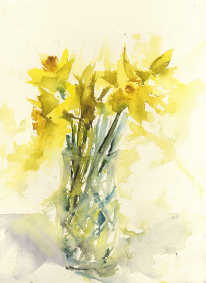 Floral art print from original watercolour "daffodils in a crystal vase"