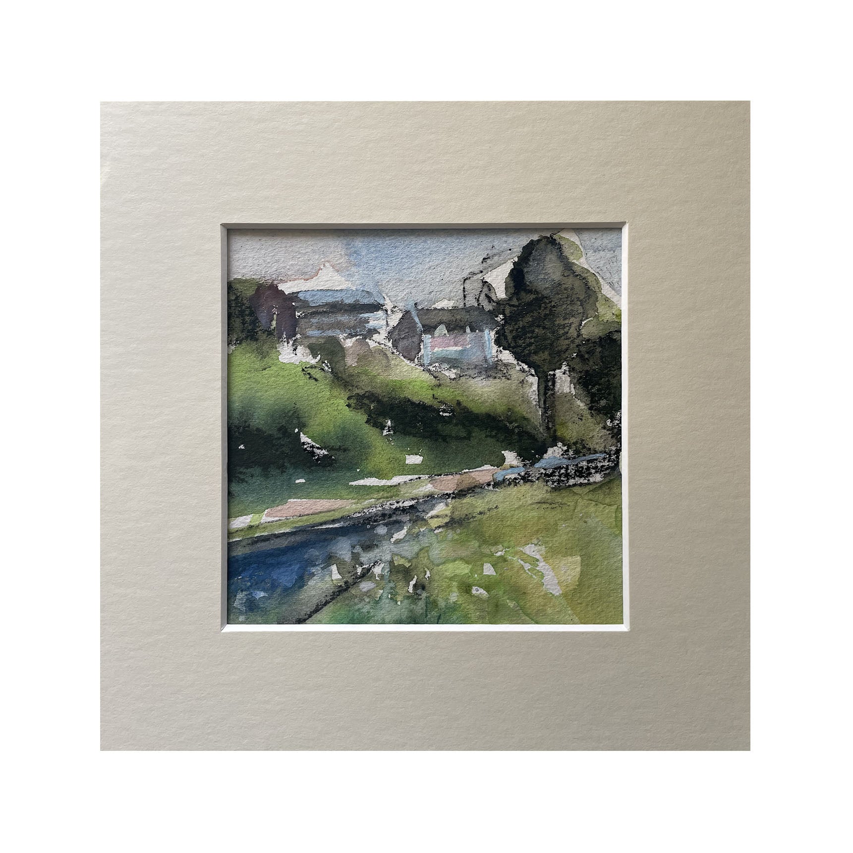 Small watercolour and charcoal painting inspired by my travels in and around the country and abroad. These mini watercolours will fit any ready available 8x8 inch frame.