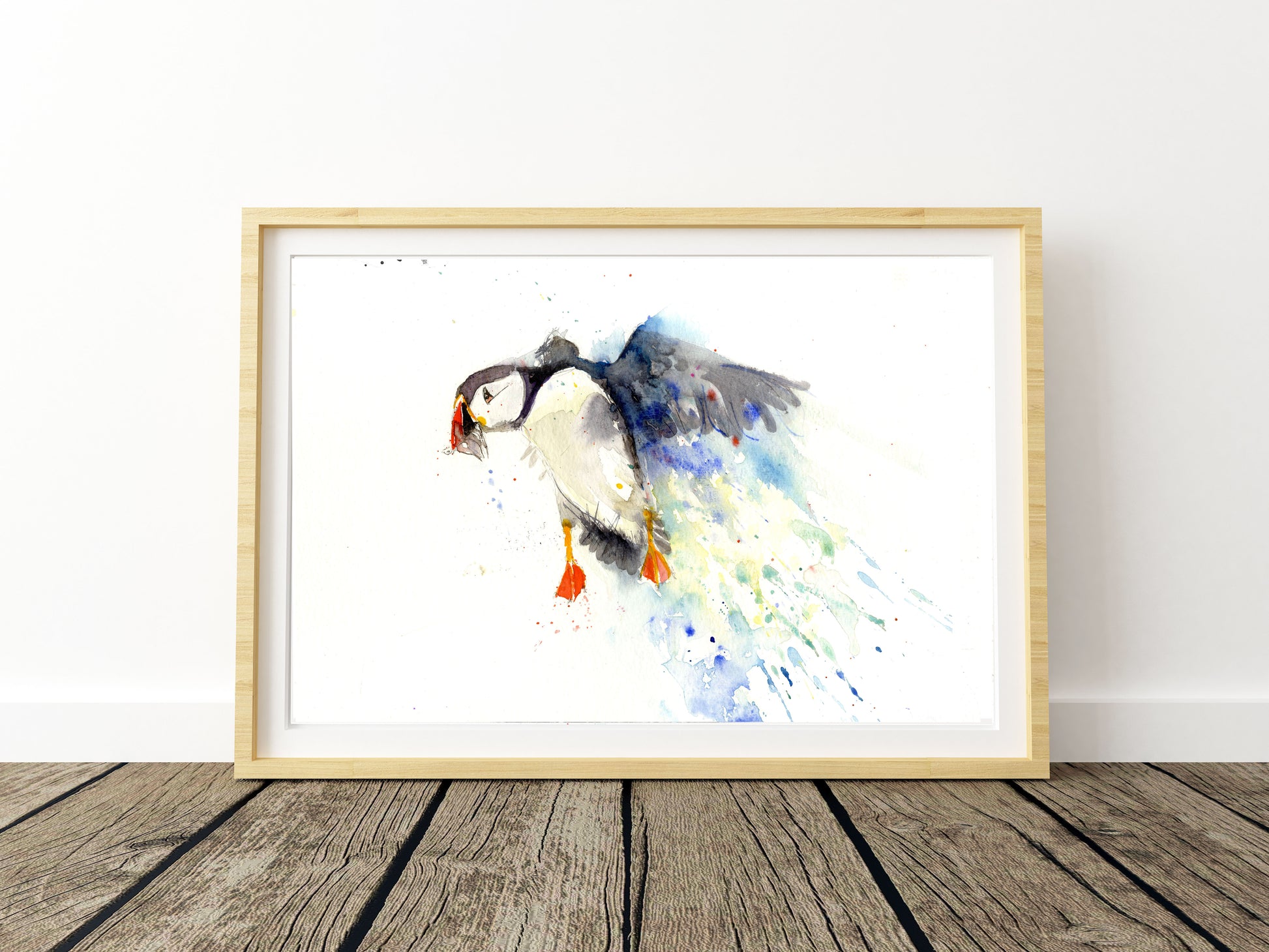 Contemporary limited edition puffin print (you will receive one of 250) of my original watercolour painting on 315gm acid-free archival quality water-colour paper. Printed using Epson ultra HD inks for maximum longevity.