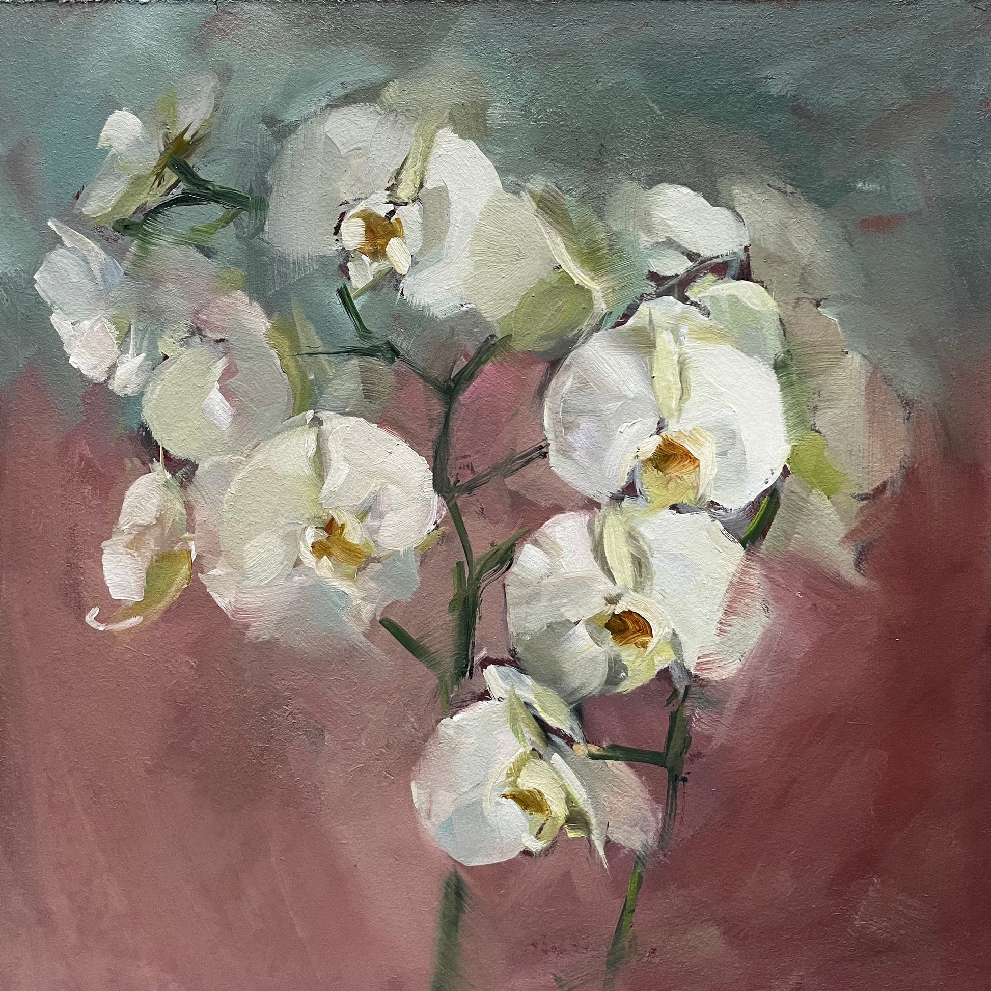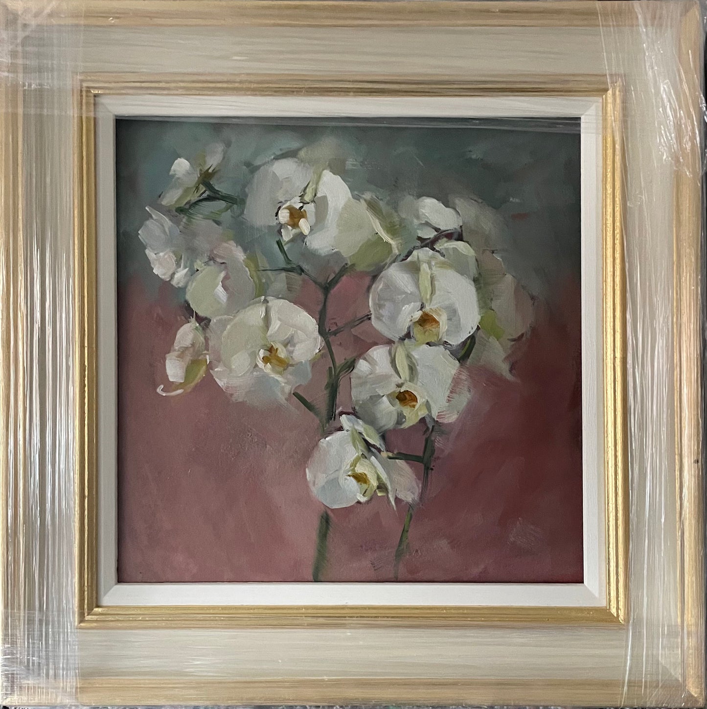 This oil painting features beautiful white orchids. It comes unframed if you would like it framed please get in touch and I can have that made for you in a frame similar to the one in the photo.