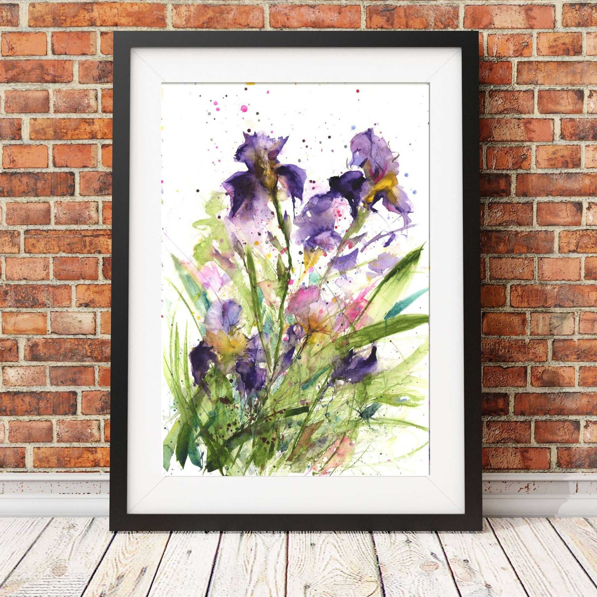 Description: Contemporary flag iris PRINT. From an original watercolour painting printed onto 320 gsm acid-free archival quality watercolour paper. Supplied in a sealed cellophane wrapper, unmounted, ready to be mounted and framed in a mount and frame of your choice.