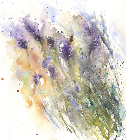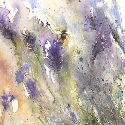 Bee on lavender flowers limited edition art print (you will receive one of 250) of my original watercolour painting on 315gm acid-free archival quality water-colour paper. Supplied in a sealed cellophane wrapper, (please note: 60x60cm size will be sent rolled inside a cardboard tube for maximum protection) unmounted ready to be mounted and framed in a mount and frame of your choice. The Bee on lavender flowers limited edition art print comes complete with a signed certificate of provenance. The print is signed on the front. Photos are for illustration only, prints on paper are unmounted and unframed.