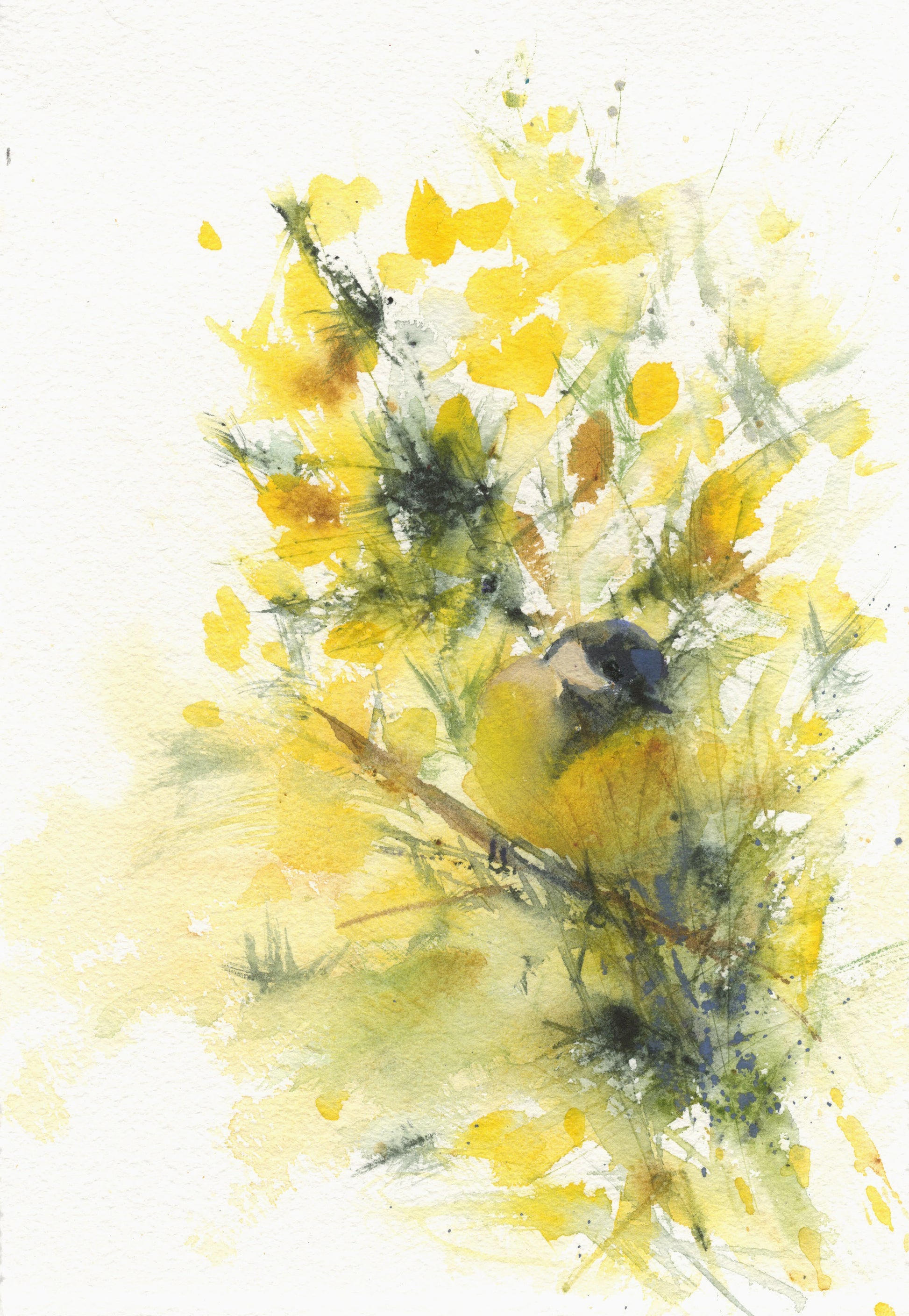 Description: Contemporary limited edition Blue tit on a gorse hedge PRINT. Limited to 250 prints. From an original watercolour painting printed onto 320gm acid-free archival quality watercolour paper. Supplied in a sealed cellophane wrapper, unmounted ready to be mounted and framed in a mount and frame of your choice. The print comes complete with a signed certificate of provenance.