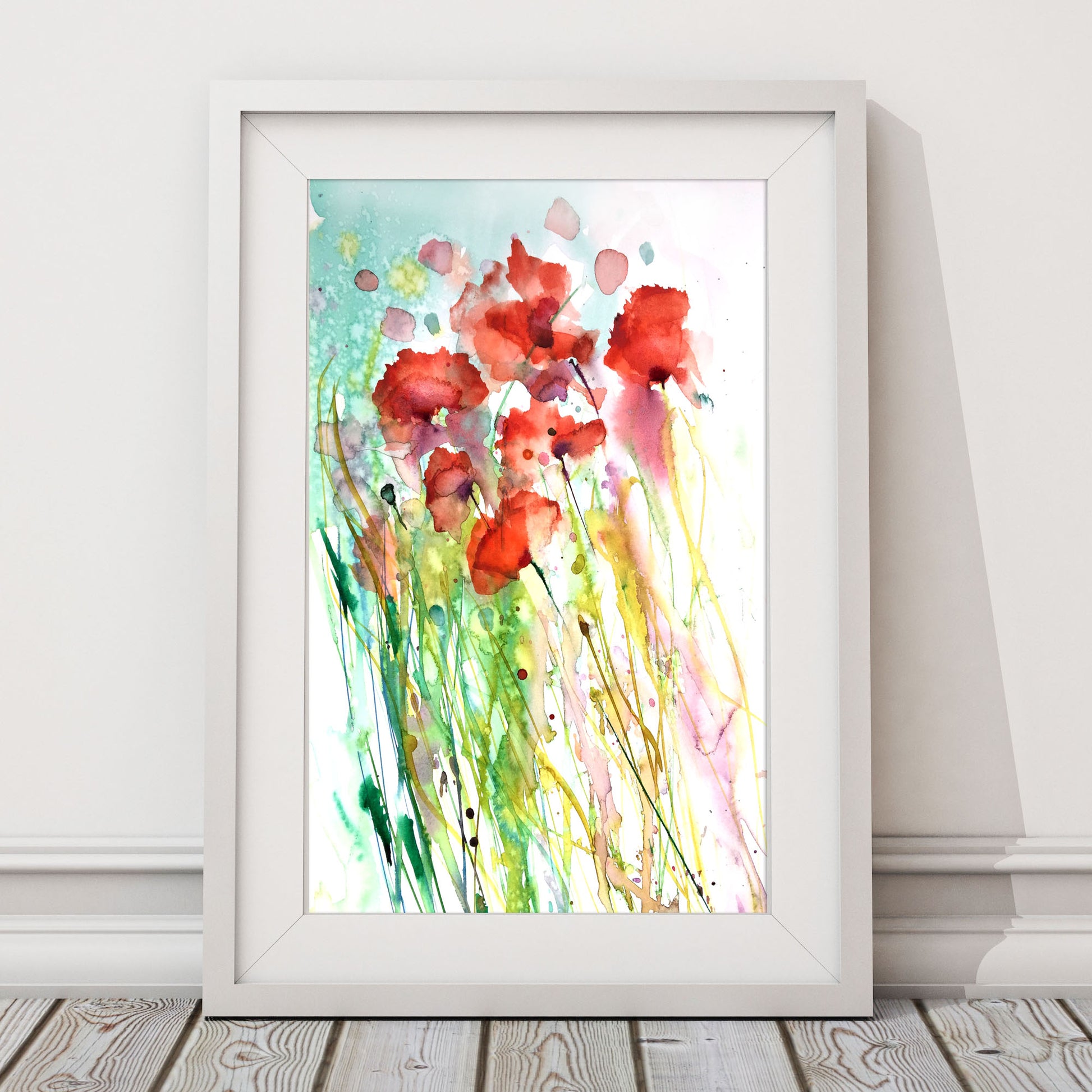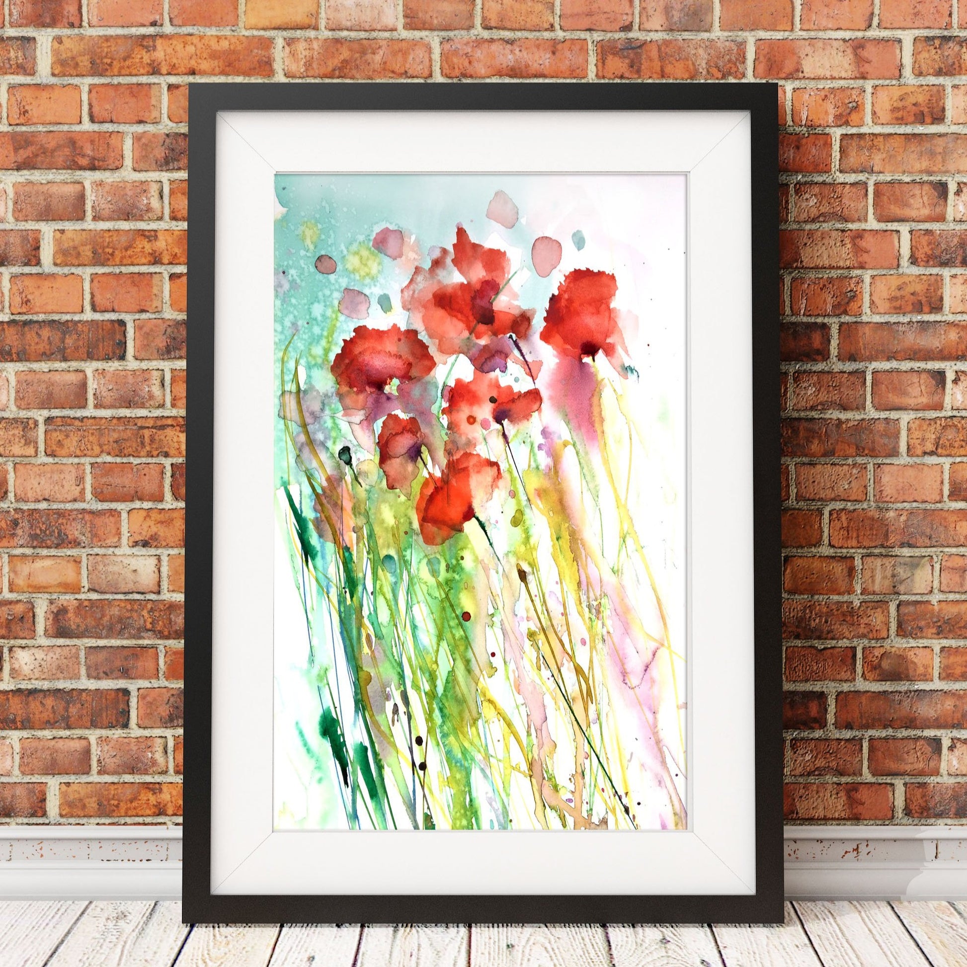 Contemporary floral poppy art print from original watercolour