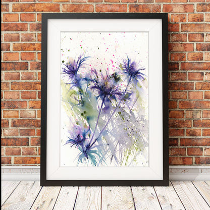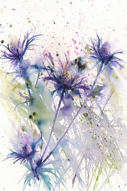 Bumblebee on a sea holly contemporary print from original watercolour.