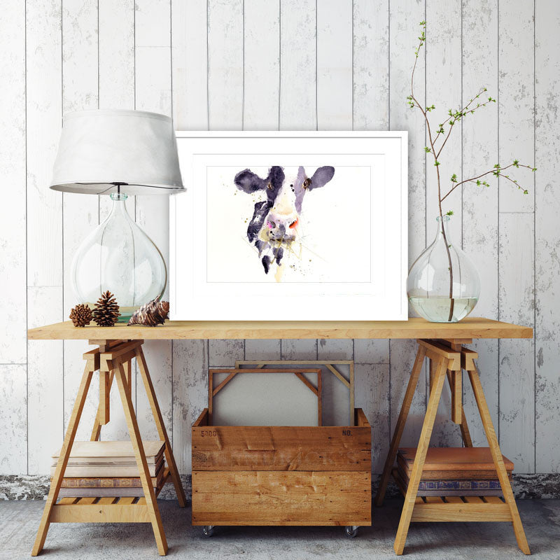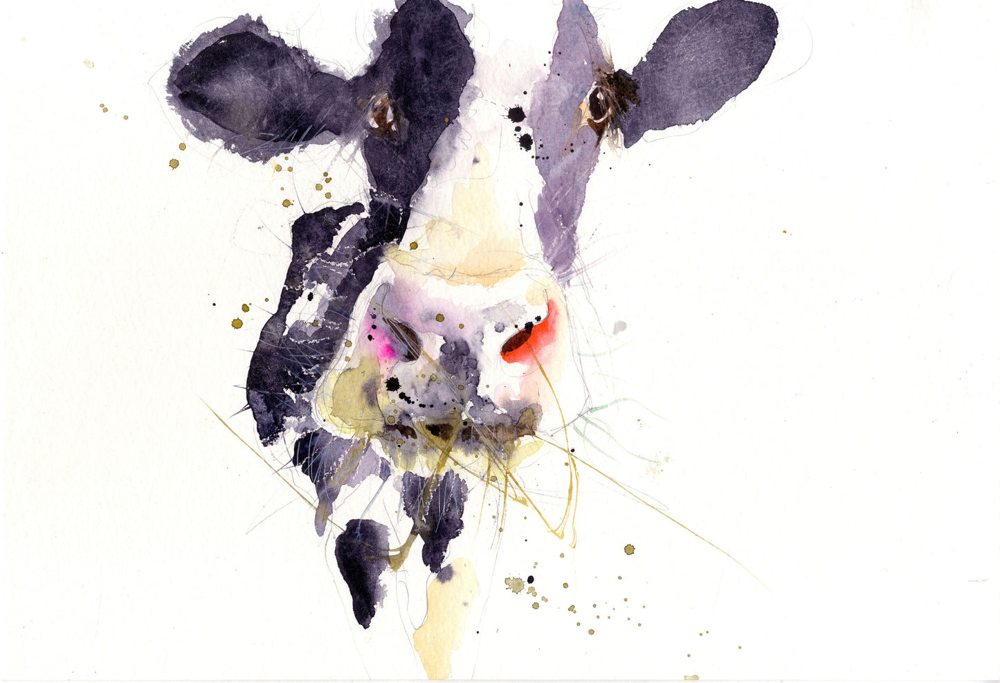 Contemporary limited edition signed cow print (you will receive one of 250) of my original watercolour painting on 315gm acid-free archival quality water-colour paper.