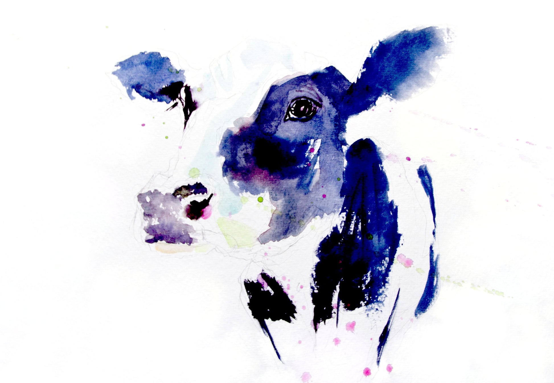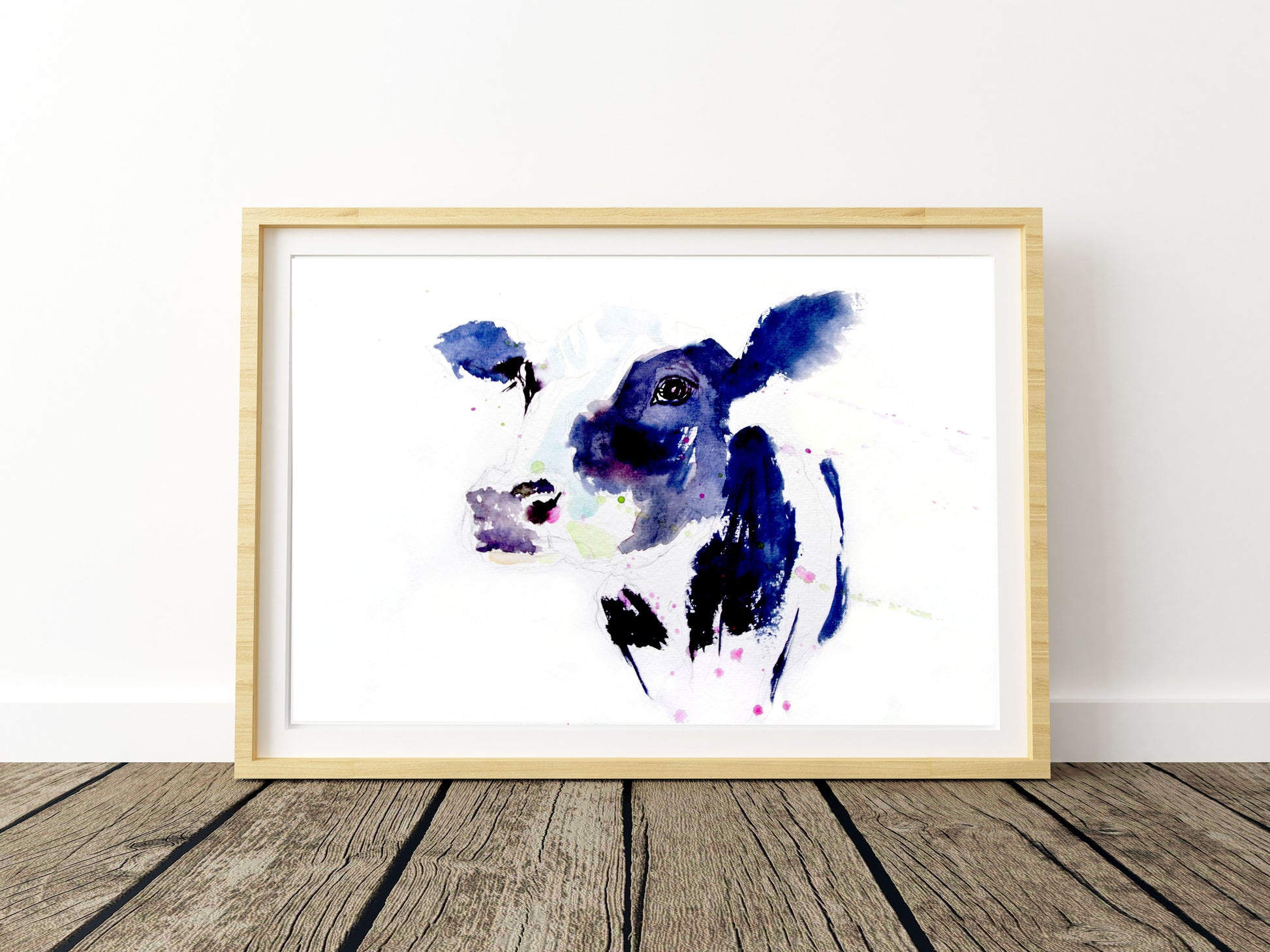 Contemporary limited edition signed cow print (you will receive one of 250) of my original watercolour painting on 315gm acid-free archival quality water-colour paper.