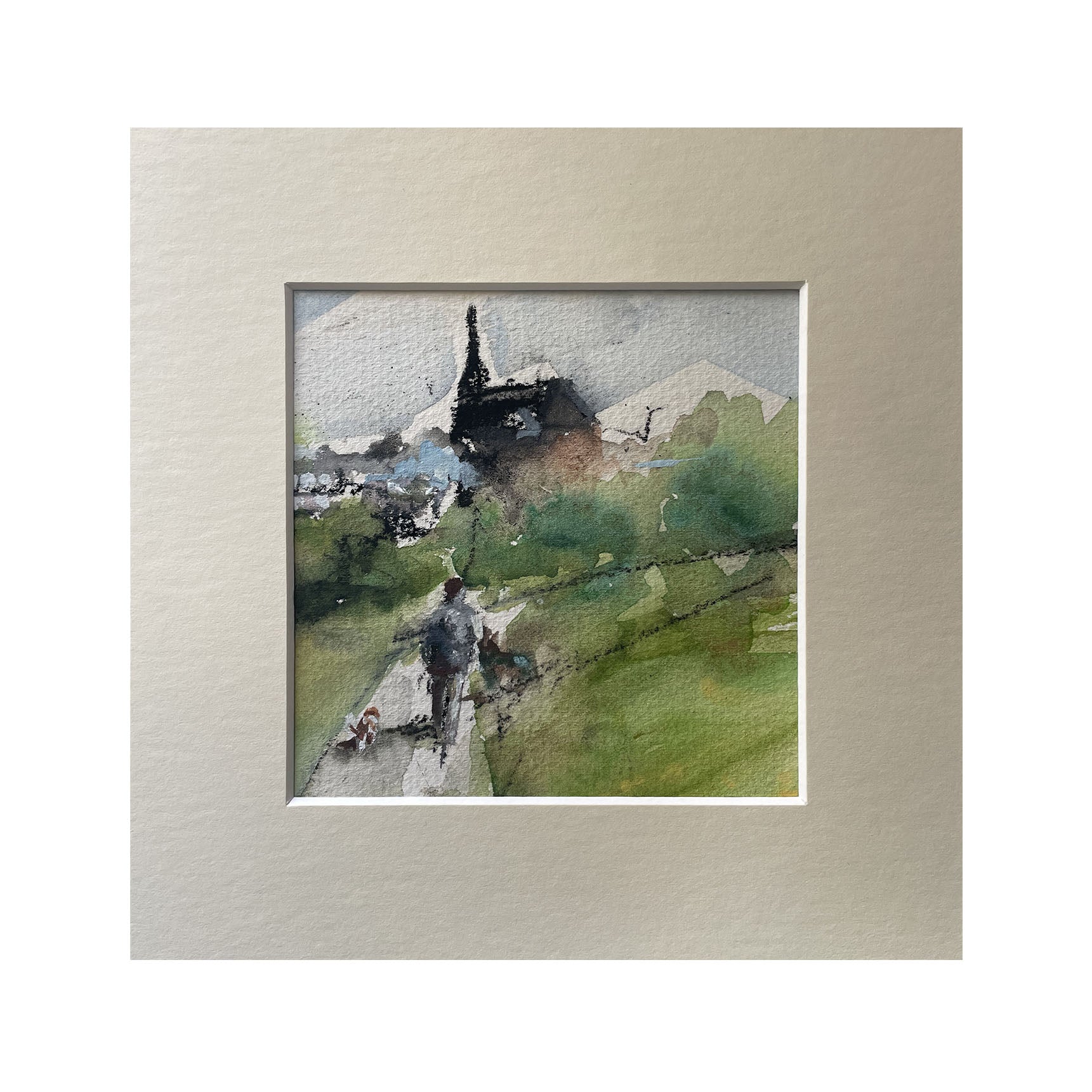 Small watercolour and charcoal painting inspired by my travels in and around the country and abroad. These mini watercolours will fit any ready available 8x8 inch frame.