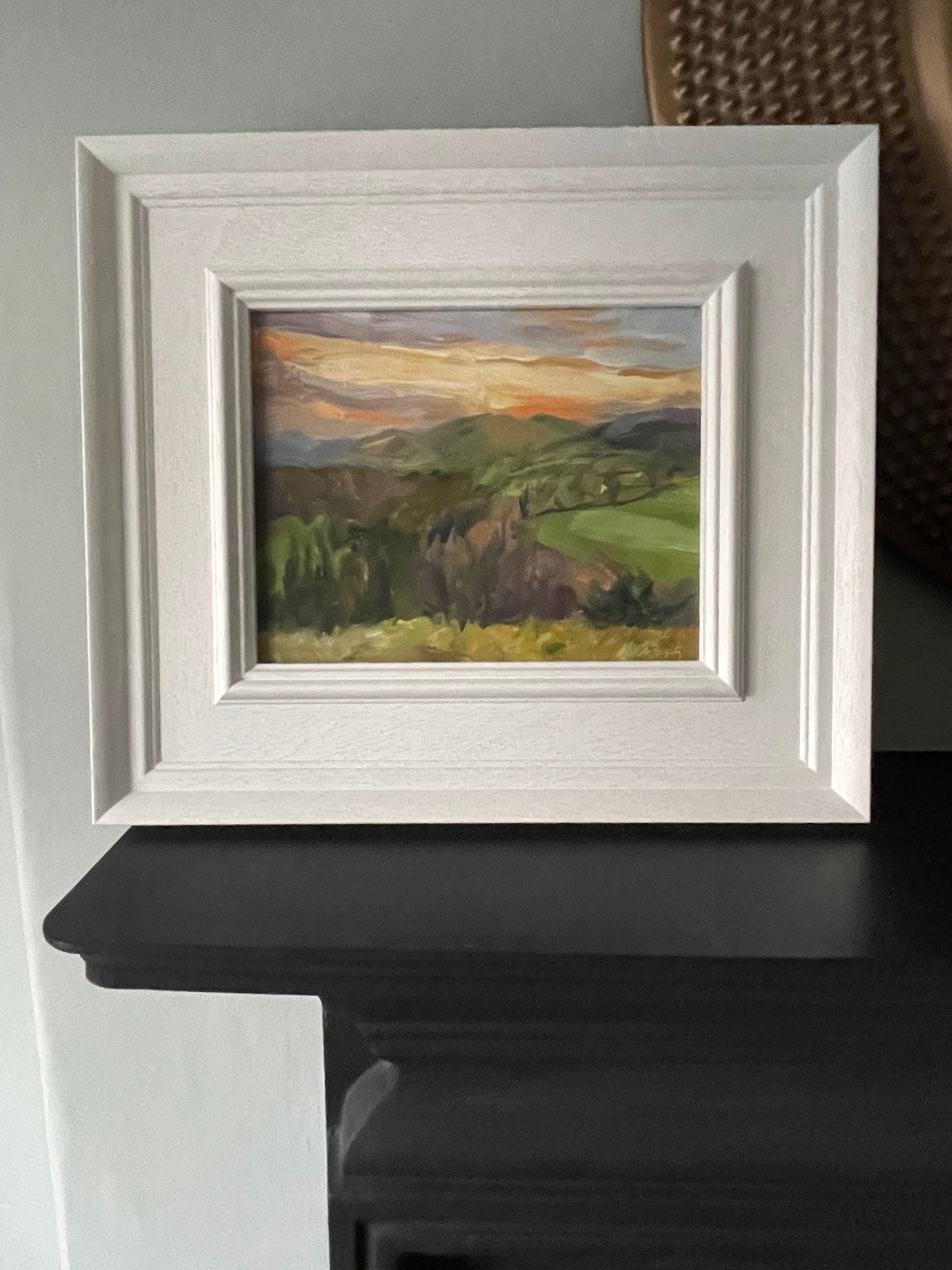 Painted at dusk from a hill overlooking the Dee valley from Loggerheads. Unframed, if you would like a frame similar to the one in the photo, please allow approximately 3 weeks for delivery.