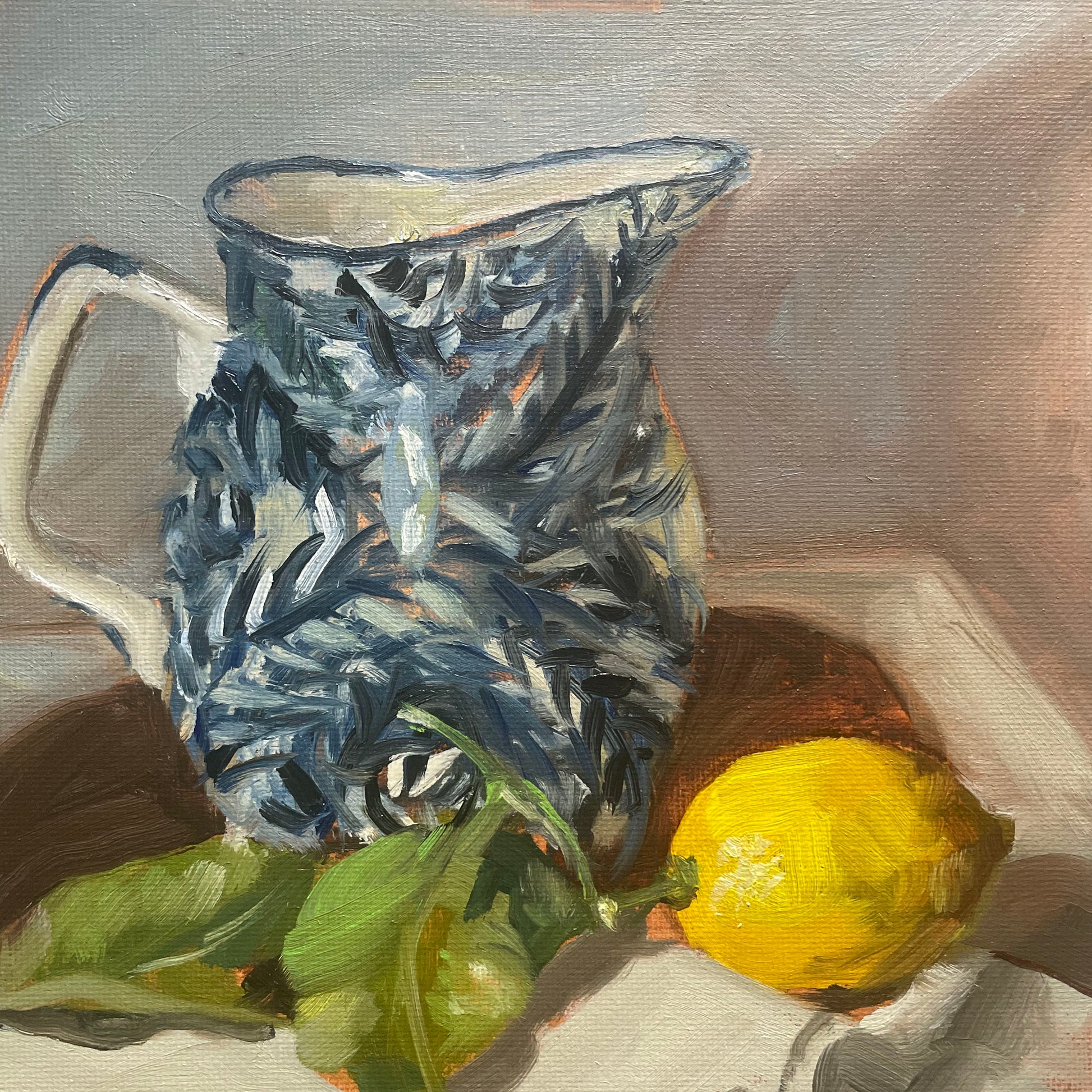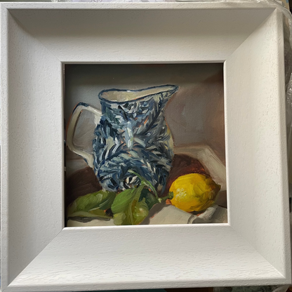 Lemon and my favorite earthenware hand-painted jug. It comes unframed. If you would like it framed, please get in touch, and I can have one made for you in a frame similar to the one in the photo.