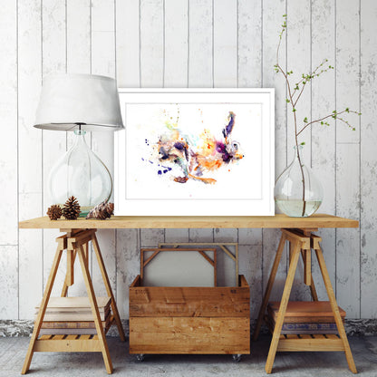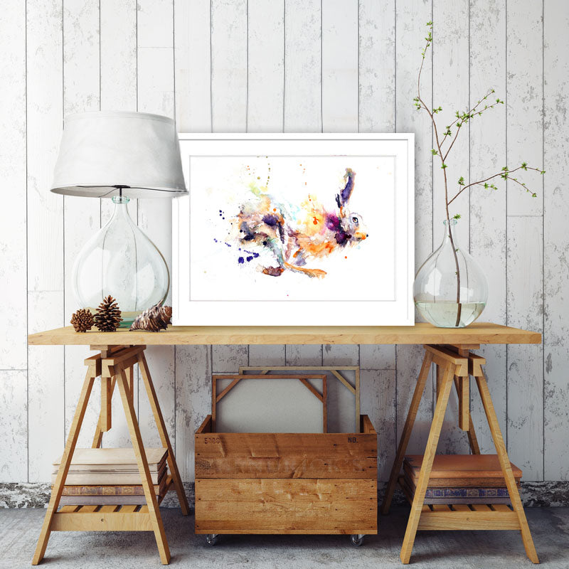 Running hare print from an original watercolour painting.