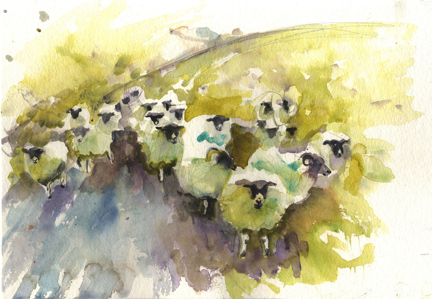 Contemporary limited edition sheep print (you will receive one of 250) of my original watercolour painting on 315gm acid-free archival quality water-colour paper.