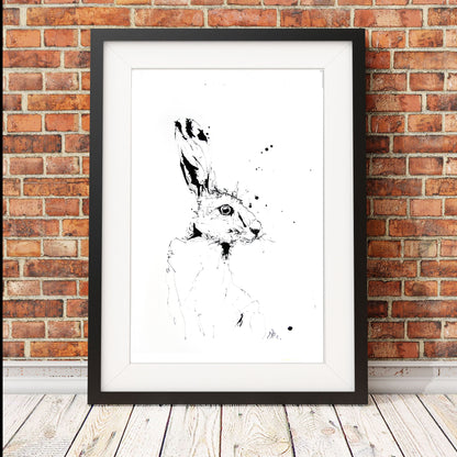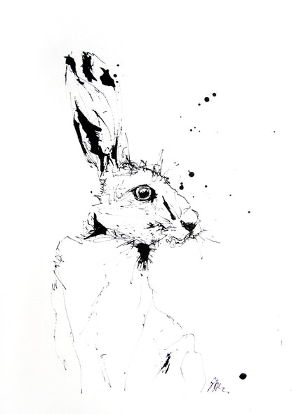 Hare watercolour print. Contemporary PRINT of my original indian ink drawing on 315gm acid free archival quality watercolour paper. Printed using epson ultra chrome inks for maximum longevity, each one is highly collectable.