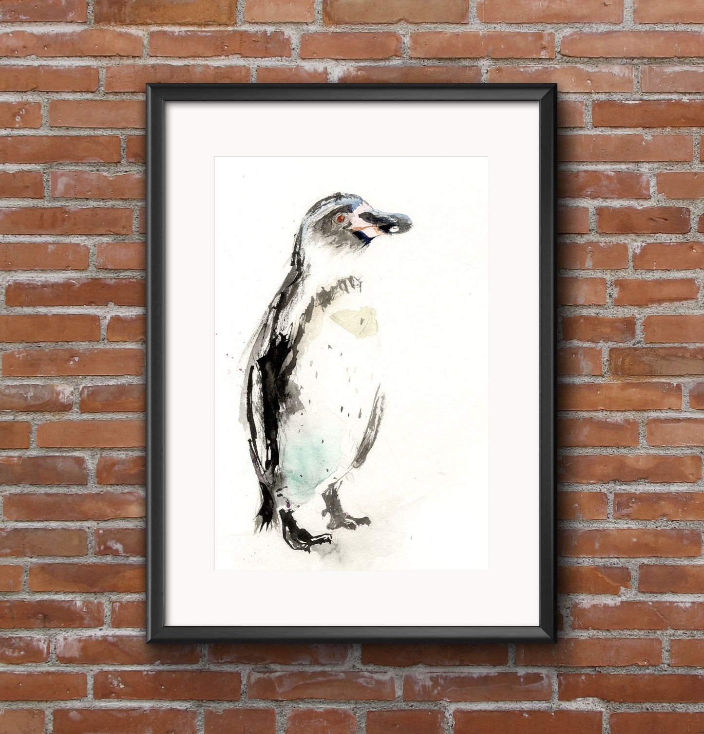 Description: Contemporary penguin PRINT from a watercolour painting on 315gm acid-free archival quality fine art paper. Printed using Epson ultra-chrome inks for maximum longevity, each one is highly collectable. Supplied in a sealed cellophane wrapper, unmounted ready to be mounted and framed in a mount and frame of your choice. The print is signed in pencil on the front of the painting and signed and dated on the reverse.