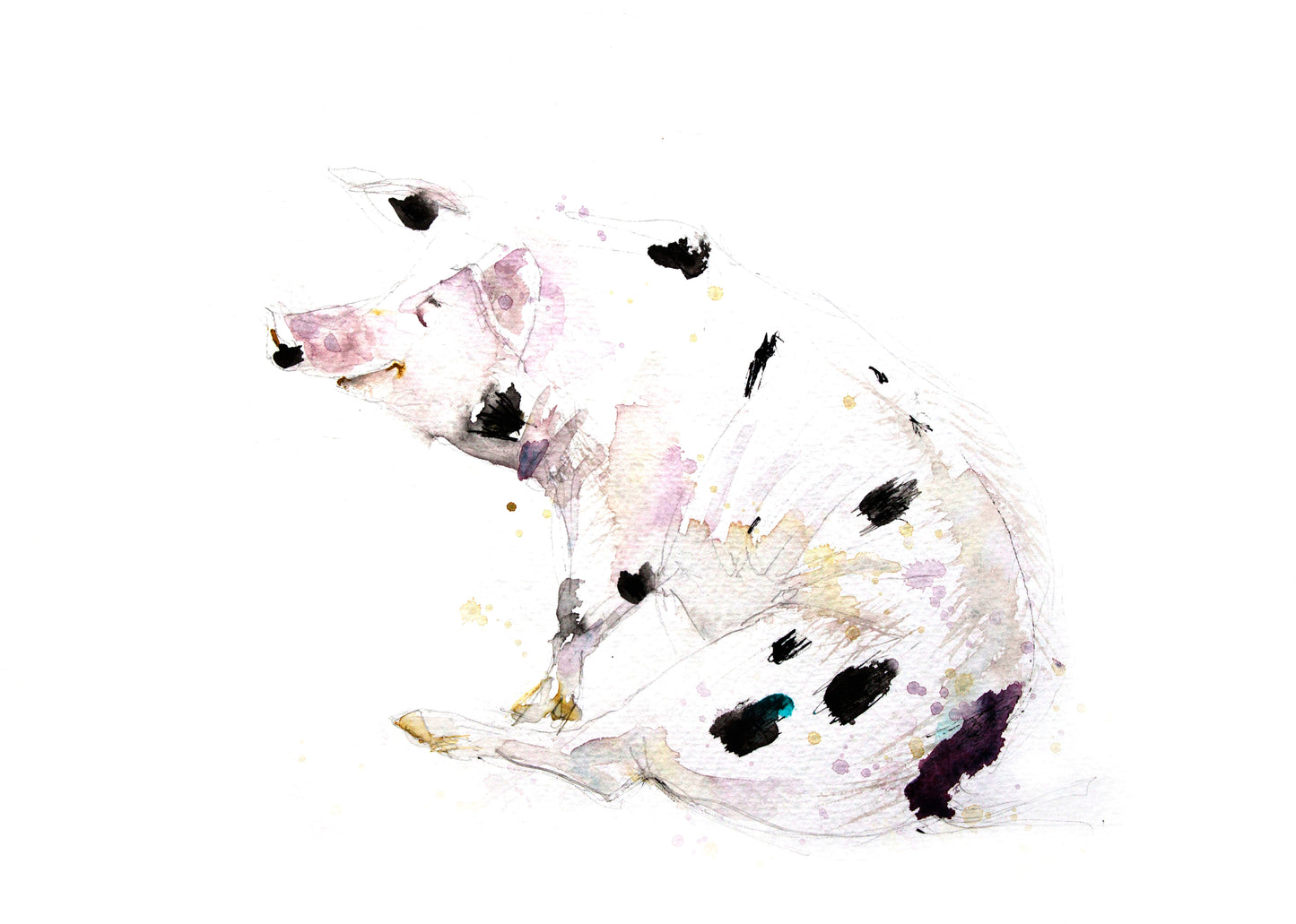 JEN BUCKLEY signed PRINT of original pig watercolour