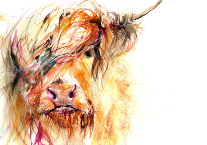 Contemporary limited edition signed Highland cow print (you will receive one of 250) of my original watercolour painting on 315gm acid-free archival quality watercolour paper.