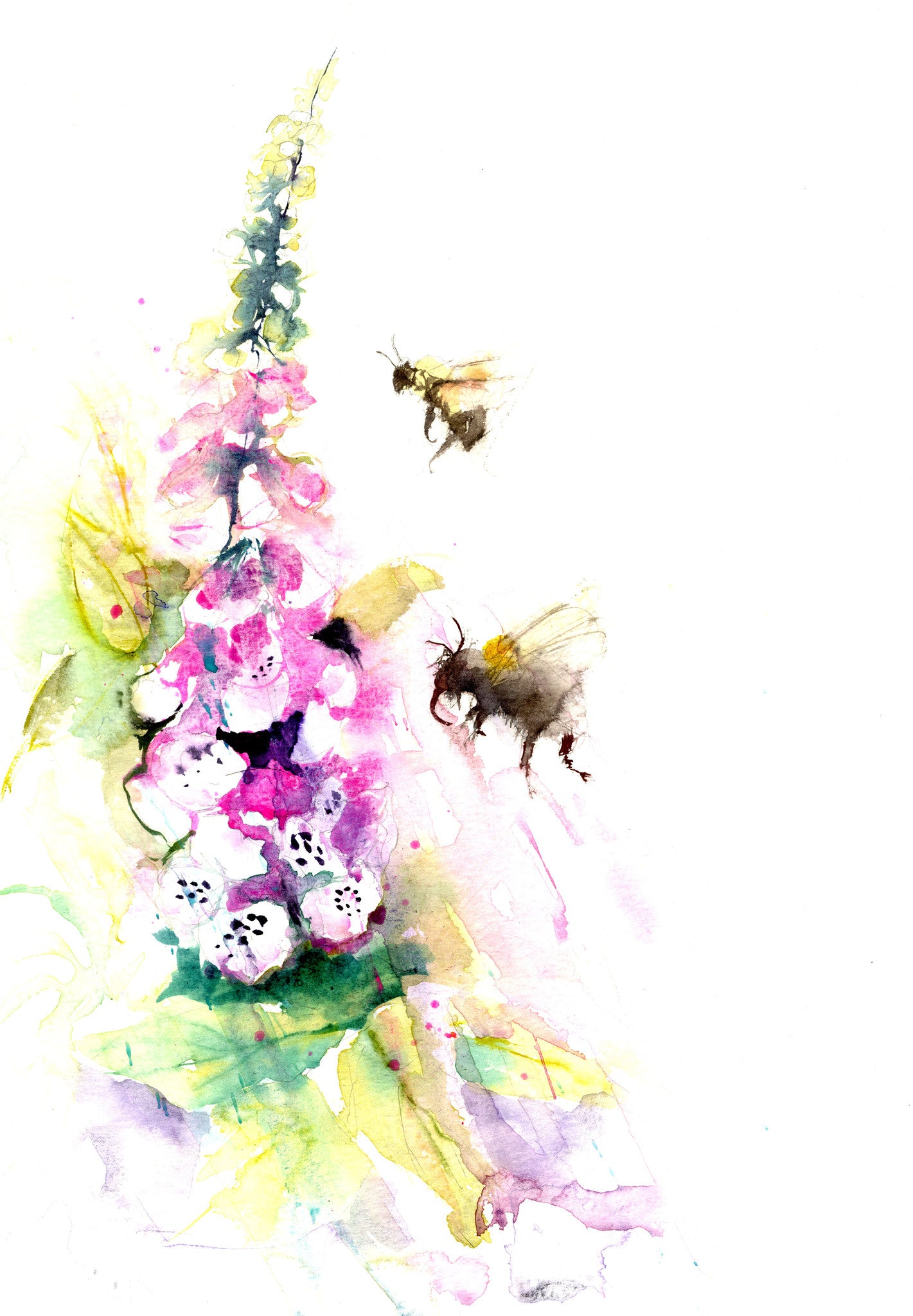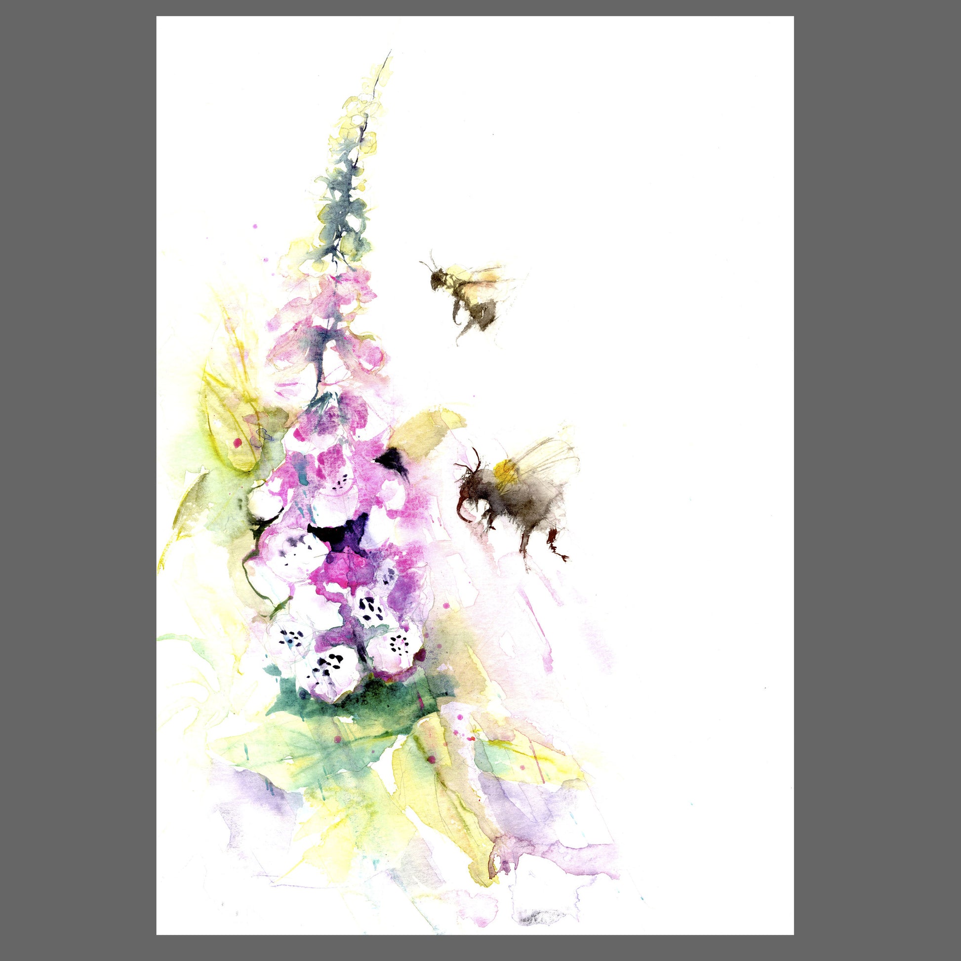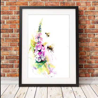 LIMITED EDITON PRINT of my original BUMBLE BEES on a foxglove