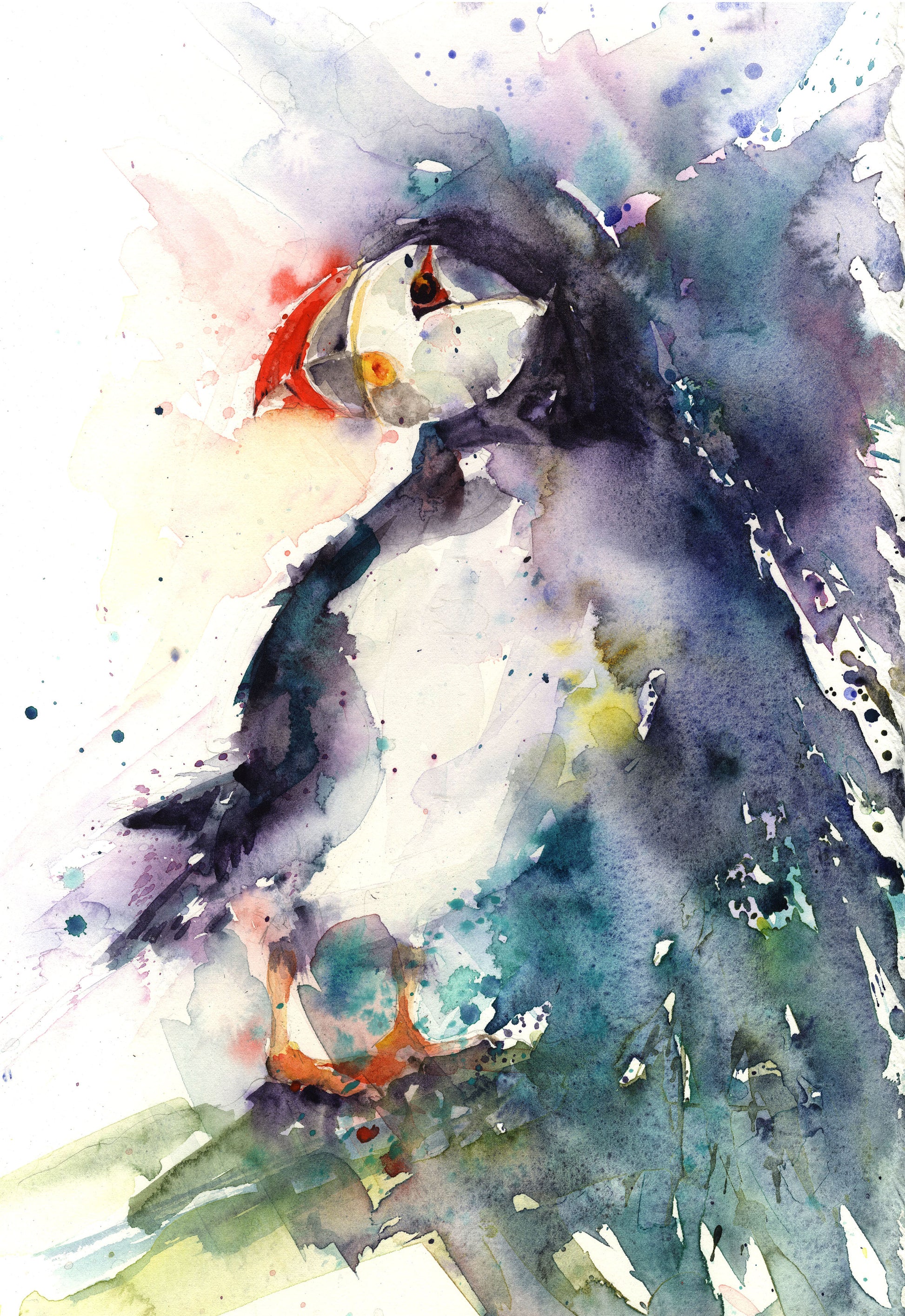 Contemporary limited edition puffin print (you will receive one of 250) of my original watercolour painting on 315gm acid-free archival quality water-colour paper. Printed using Epson ultra HD inks for maximum longevity.