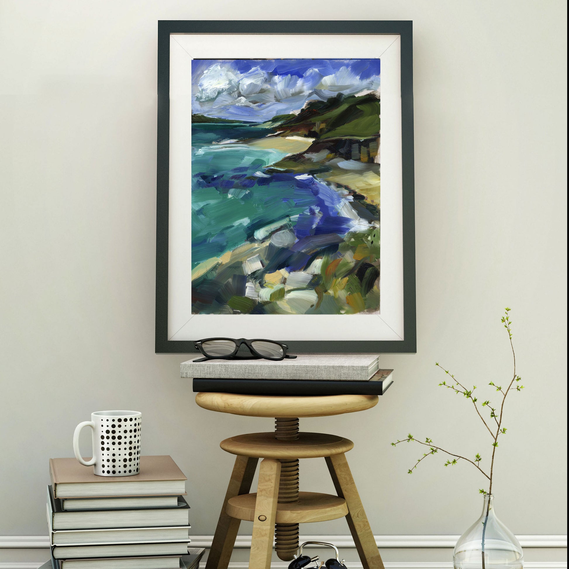 Little and Great Molunan, Cornwall. Art print from an original oil painting. Unmounted ready to be mounted and framed in a mount and frame of your choice. Photos are for illustration only, prints on paper are unmounted and unframed.