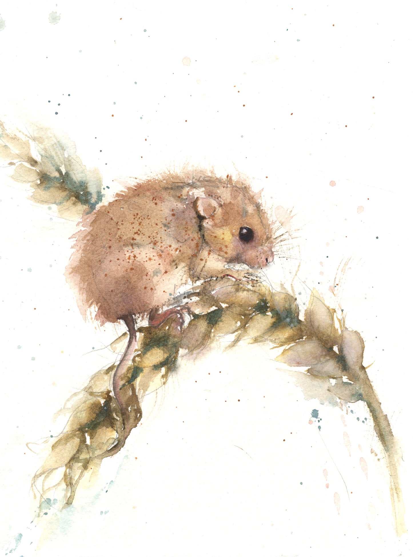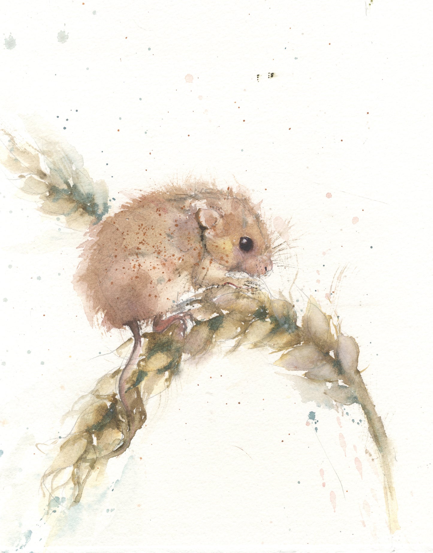 Beautiful watercolour painting of "Albert" fieldmouse on an ear of corn. Painted on a 500 gsm archival quality watercolour paper. Supplied unmounted and unframed. Please see the pictures for framing ideas.