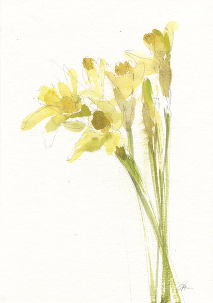 Original watercolour painting Daffodils