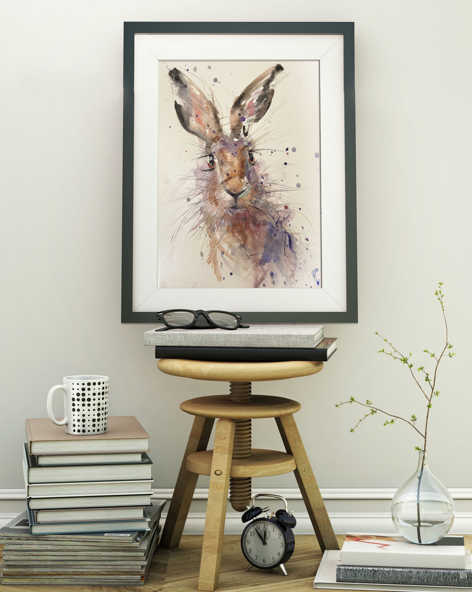 Beautiful watercolour painting of a wild hare. Painted using 300 gsm archival quality watercolour paper. Supplied unmounted and unframed. Please see the pictures for framing ideas.