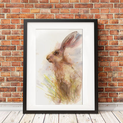 Beautiful watercolour painting of a wild hare. Painted using 300 gsm archival quality watercolour paper. Supplied unmounted and unframed. Please see the pictures for framing ideas.