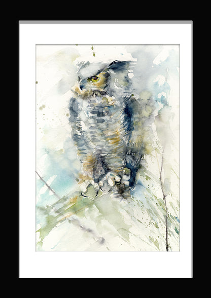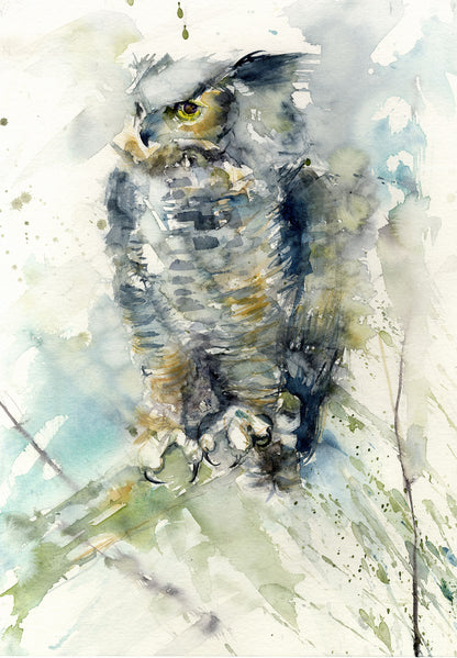 Original watercolour painting 'Horned owl'