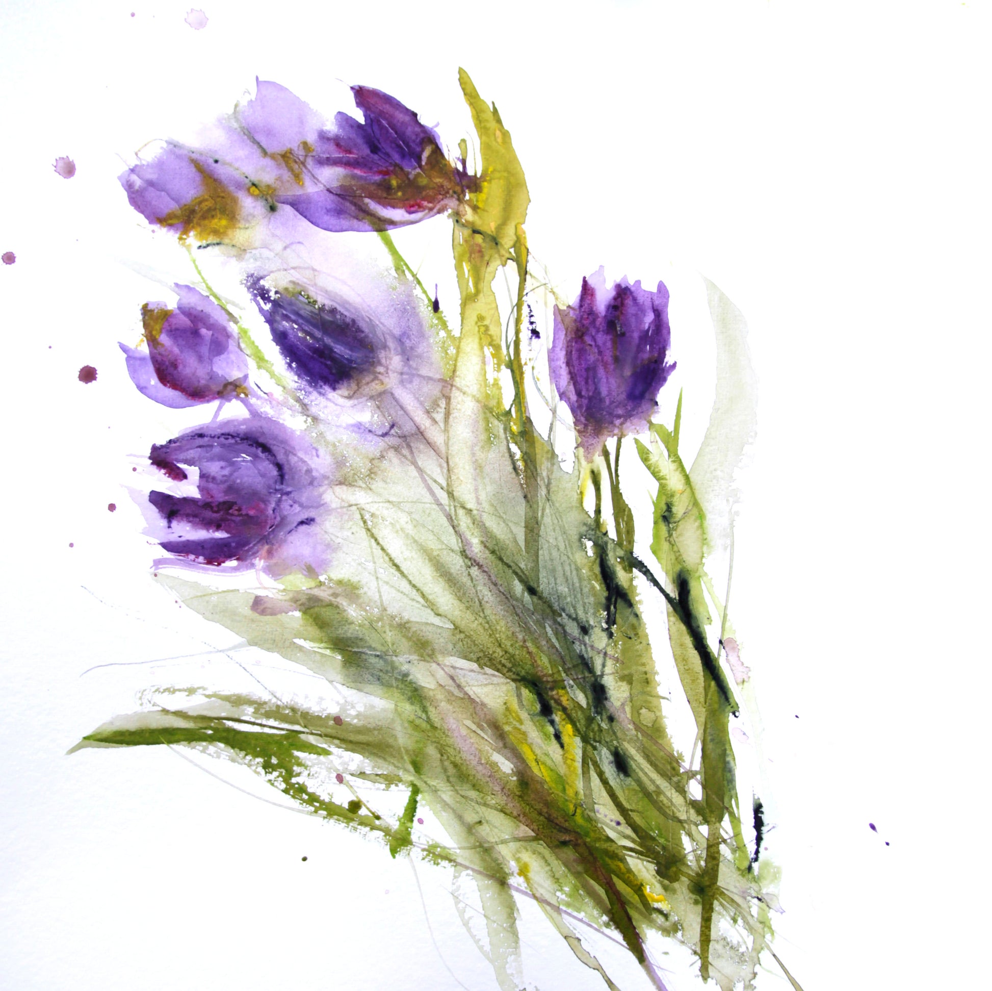 Beautiful large watercolour painting of spring tulips. Painted using a 500 gsm archival quality watercolour paper. Supplied unmounted and unframed. Please see the pictures for framing ideas. (not to scale)