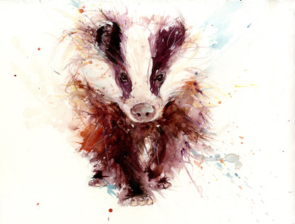 Contemporary signed limited edition badger print (you will receive one of 250) of my original watercolour painting on 315gm acid-free archival quality water-colour paper. Printed using Epson ultra HD inks for maximum longevity.