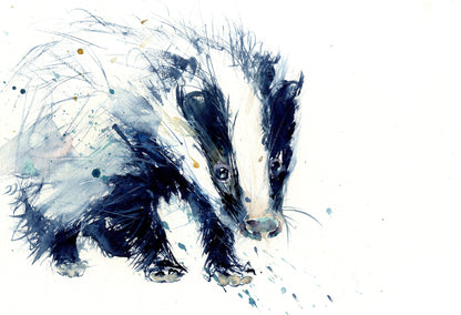 Contemporary signed limited edition badger print (you will receive one of 250) of my original watercolour painting on 315gm acid-free archival quality water-colour paper. Printed using Epson ultra HD inks for maximum longevity.