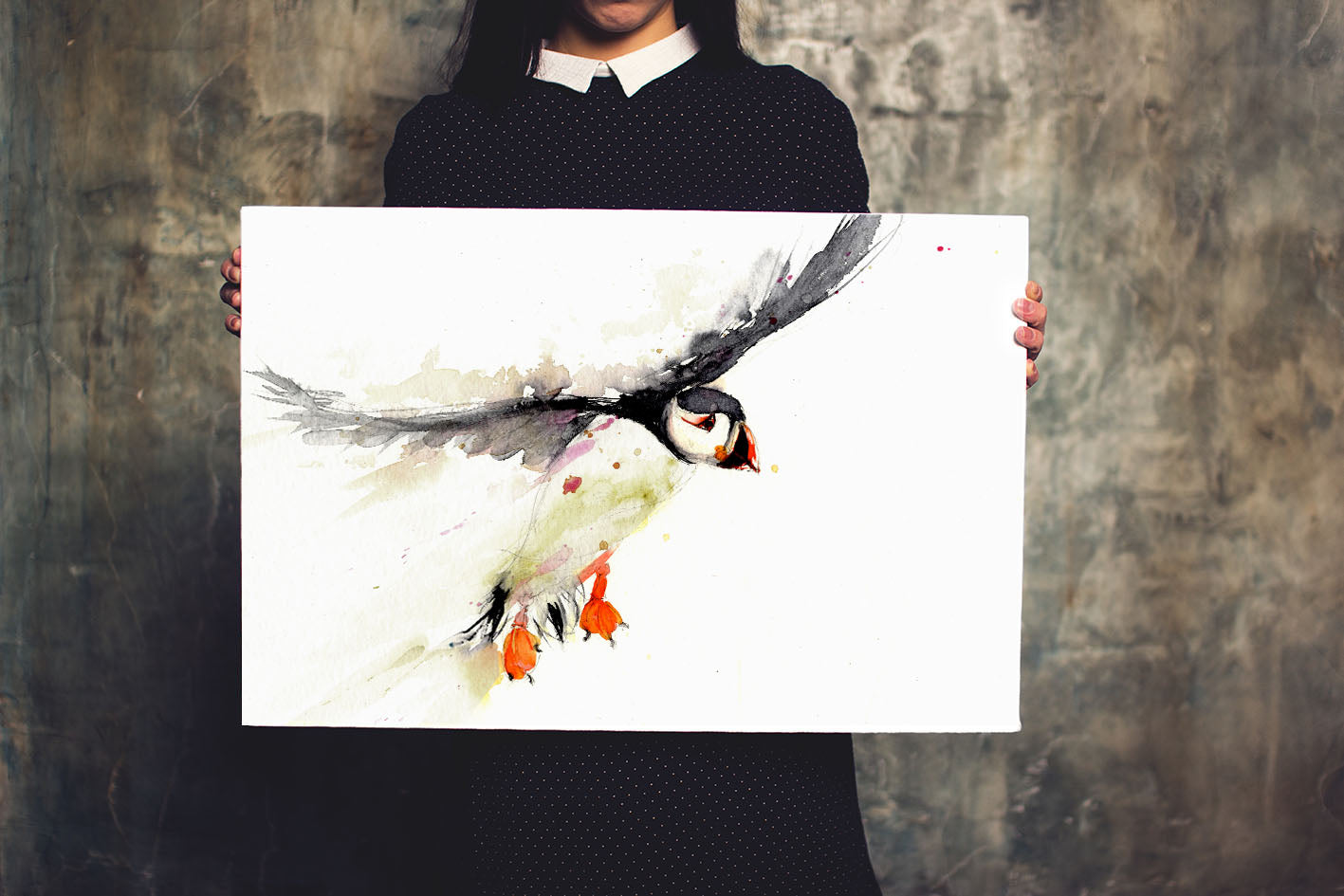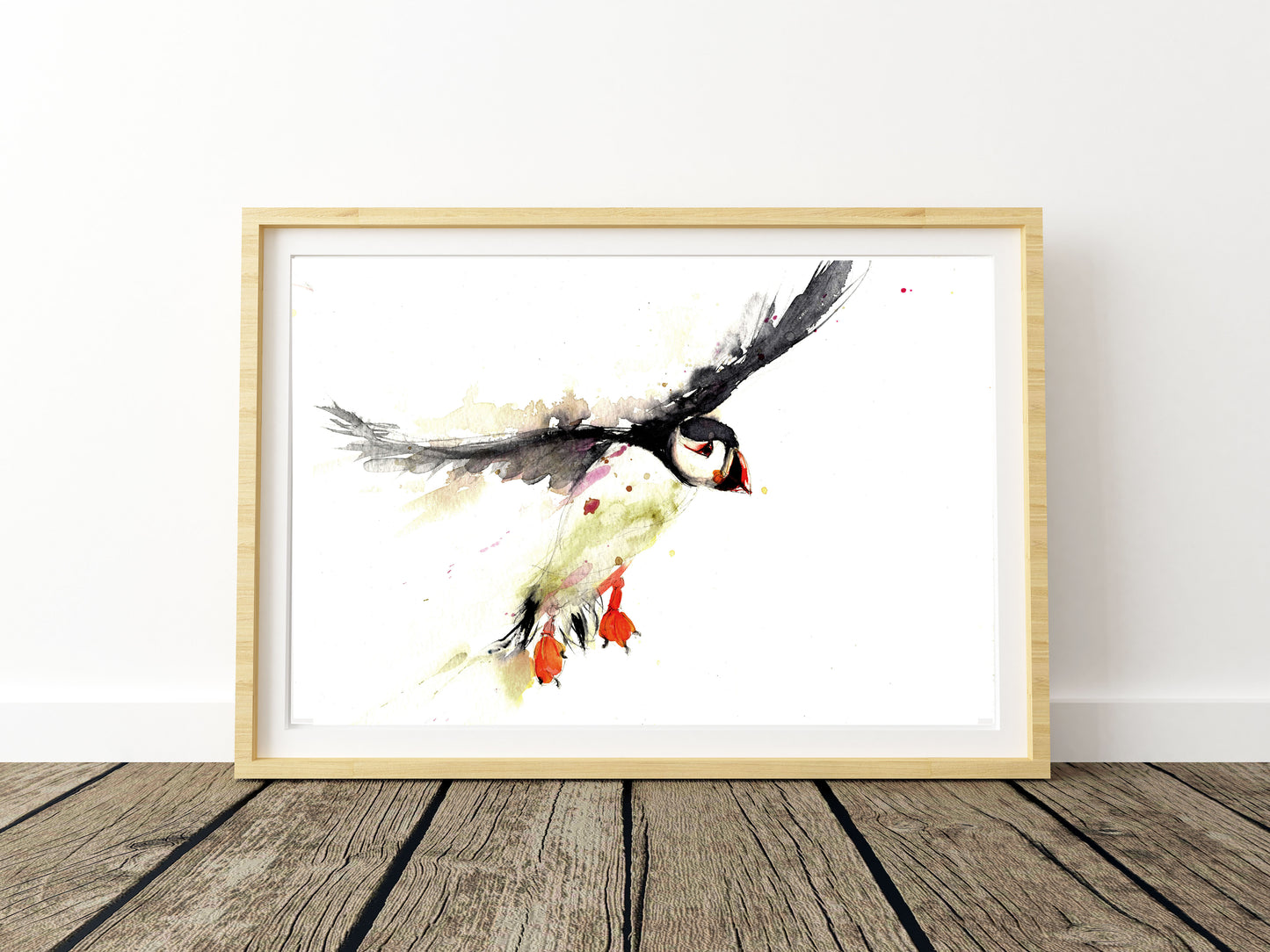 Contemporary limited edition puffin print (you will receive one of 250) of my original watercolour painting on 315gm acid-free archival quality water-colour paper. Printed using Epson ultra HD inks for maximum longevity.