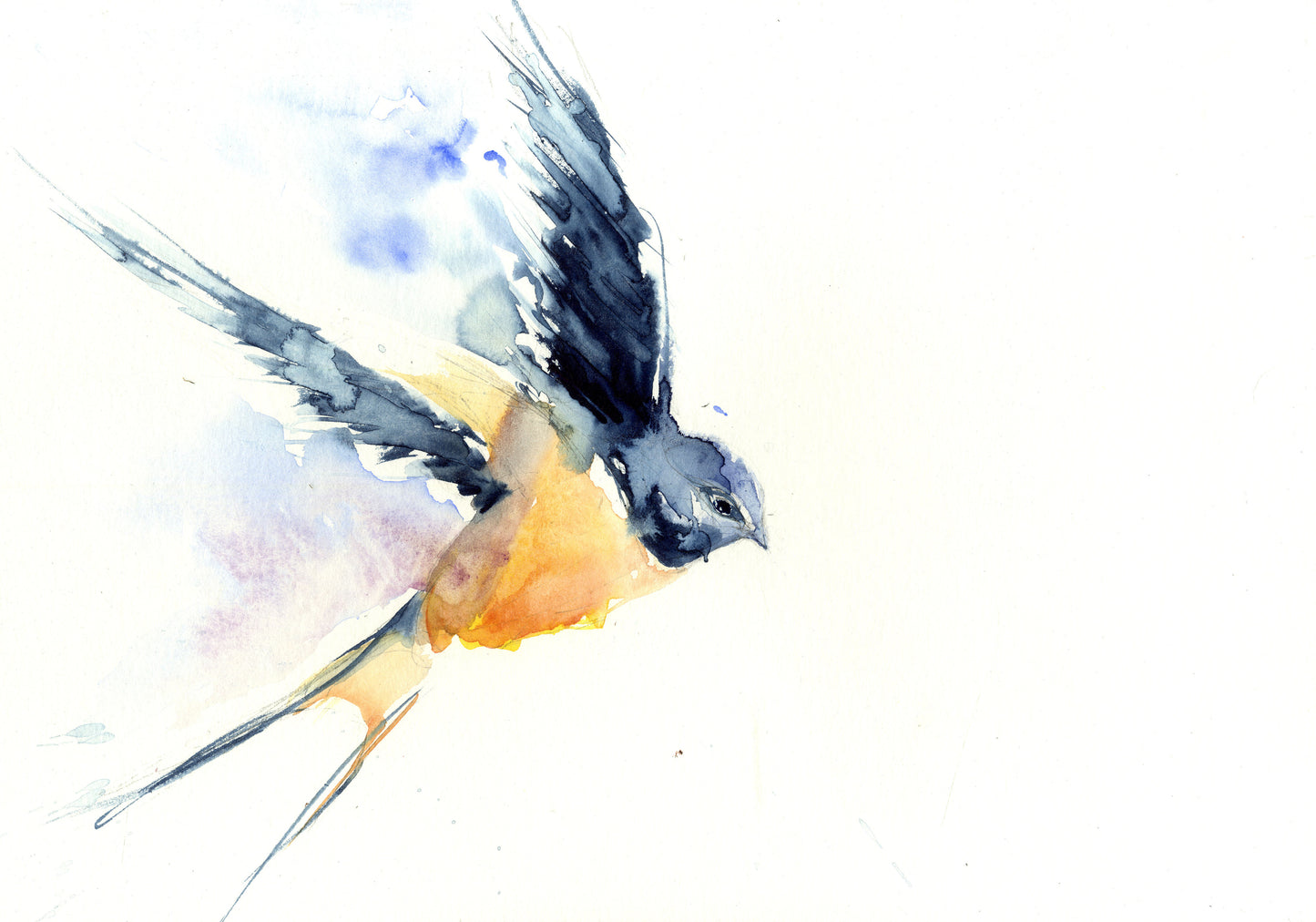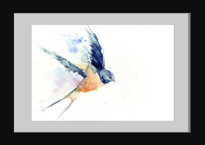 Contemporary LIMITED EDITION swallow PRINT (you will receive one of 250) of my original watercolour painting on 315gm acid-free archival quality water-colour paper. Printed using Epson ultra HD inks for maximum longevity. Supplied in a sealed cellophane wrapper, (please note: A2 size will be sent rolled inside a cardboard tube for maximum protection) unmounted ready to be mounted and framed in a mount and frame of your choice. The print comes complete with a signed and numbered certificate of provenance. The print is signed and numbered in pencil on the front and signed and dated on the reverse. Photos are for illustration only, prints on paper are unmounted and unframed. Photographs are for illustration only, prints on paper are unmounted and unframed. Artwork copyright ©2015 Jen Buckley